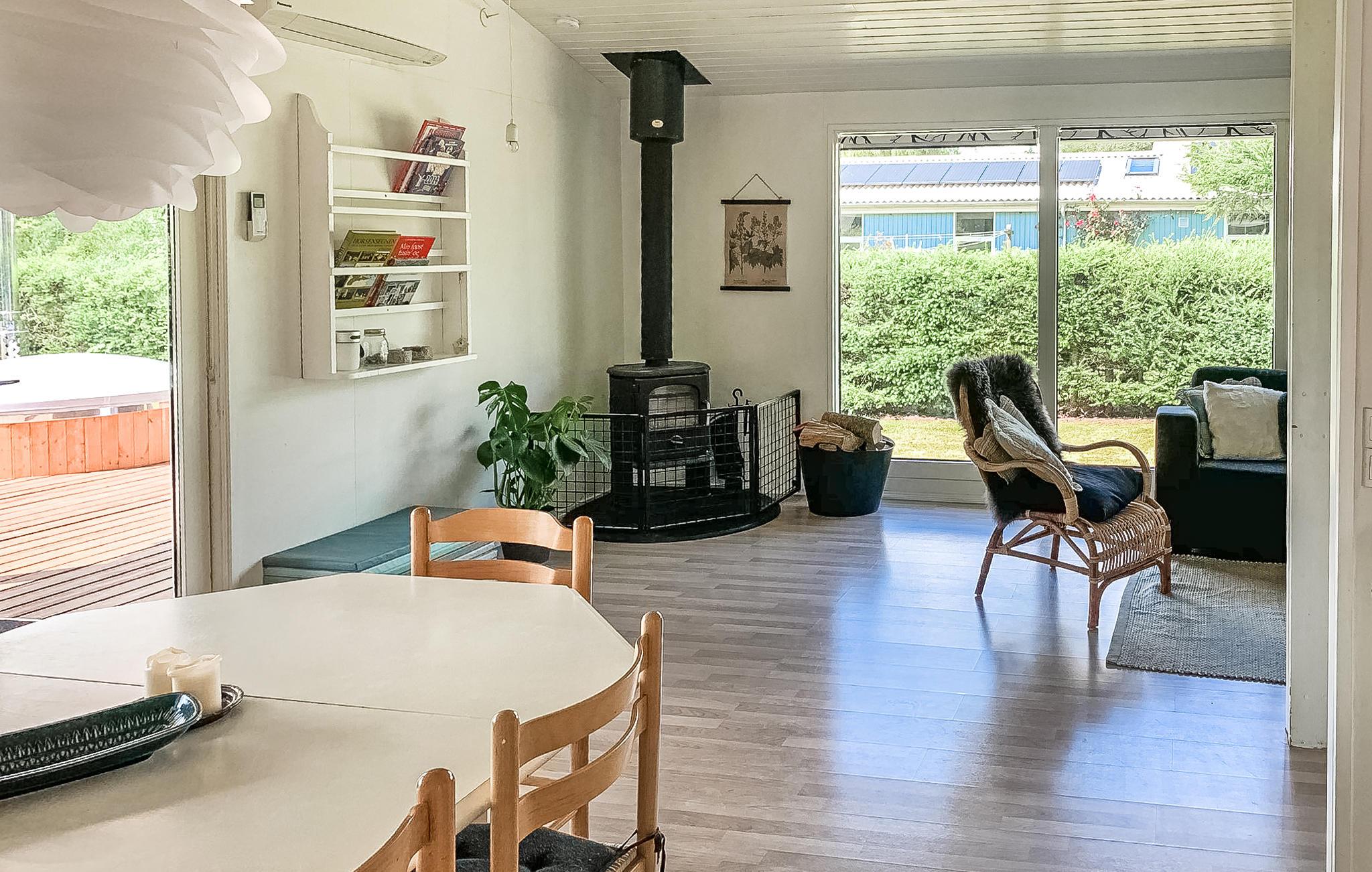 In einem schönen, gut etablierten Ferienhausgebiet mit Wegesystem zum Wasser finden Sie dieses schöne Ferienhaus. Es gibt 4 gute Zimmer und Platz für 7 Personen. Der Garten ist mit Trampolin, Schaukel, Sandkasten und Spielhaus ausgestattet. Es gibt eine große Rasenfläche, sodass Sie alle an einem Ballspiel teilnehmen können. Das Wohnzimmer ist gemütlich eingerichtet mit Essbereich und Sofagruppe in offener Verbindung zur voll ausgestatteten Küche. Es gibt einen Raum mit Waschmaschine und Trockner sowie eine schöne Ecke mit Tisch und Bänken, in der Sie sich hinsetzen und eines Ihrer Lieblingsbrettspiele spielen können.