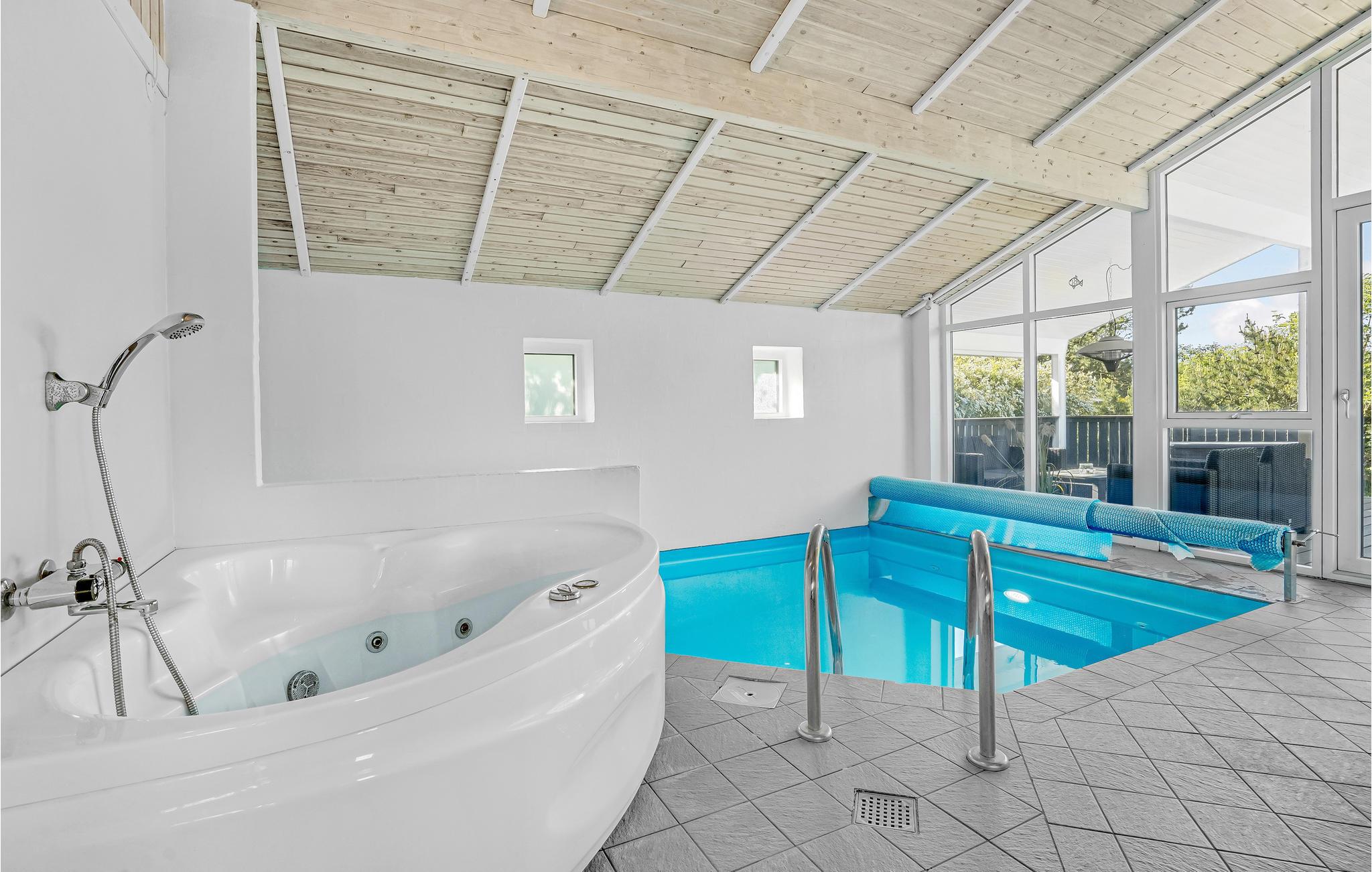 Modernes Ferienhaus auf Juelsminde mit Pool, Sauna und kinderfreundlichem Garten erwartet Sie für erholsame Tage.