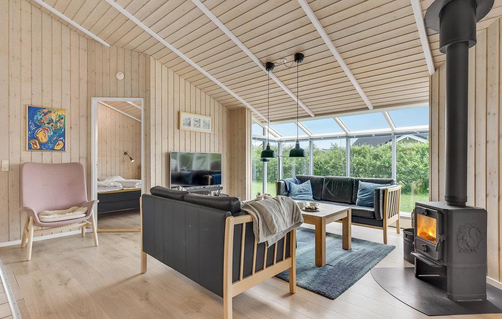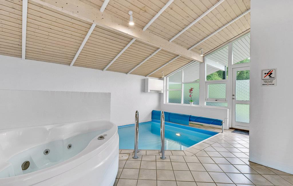 Modernes Ferienhaus mit Sauna, Pool und Naturgrundstück nahe Ostjütlands kinderfreundlicher Küste.