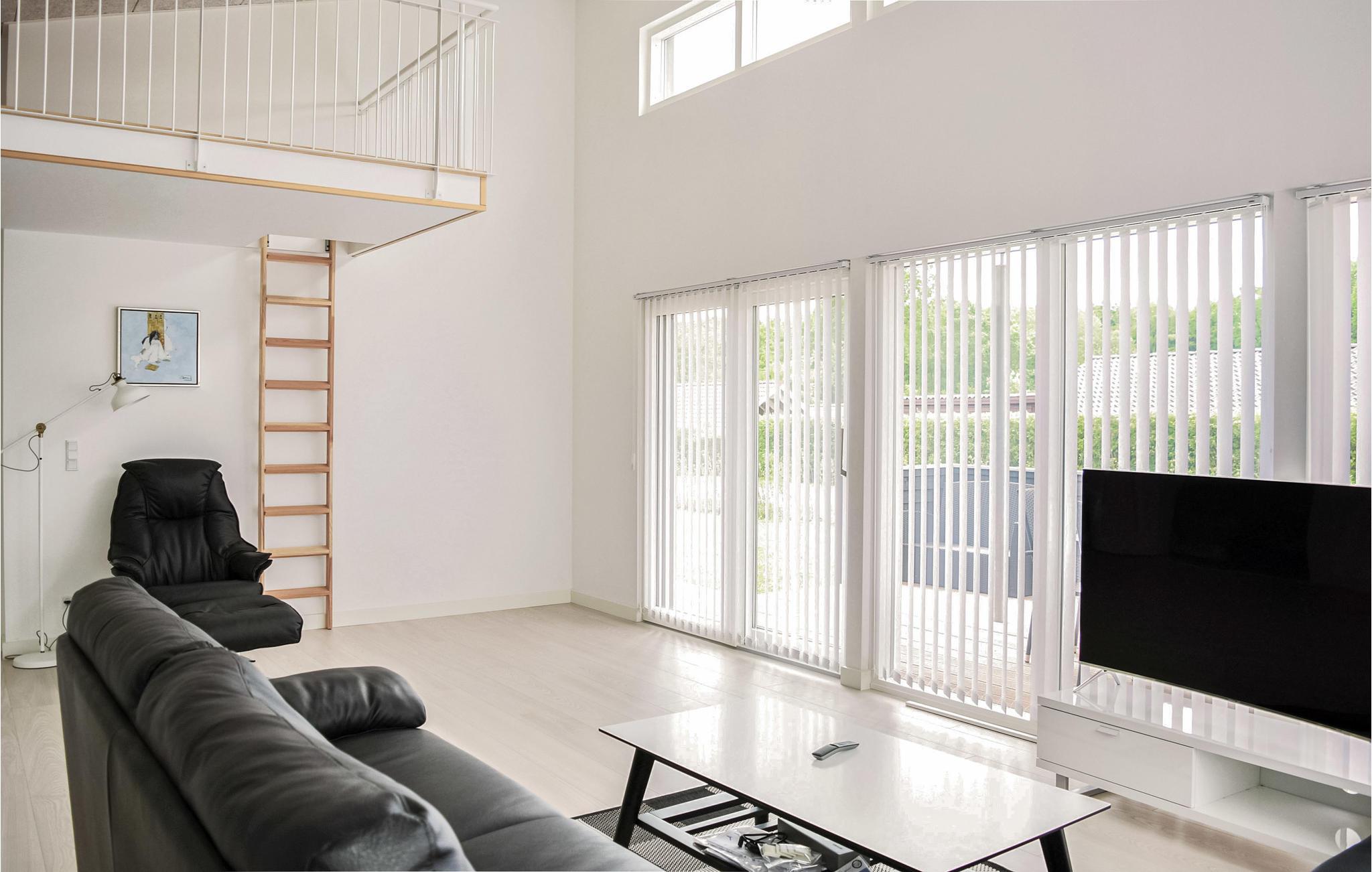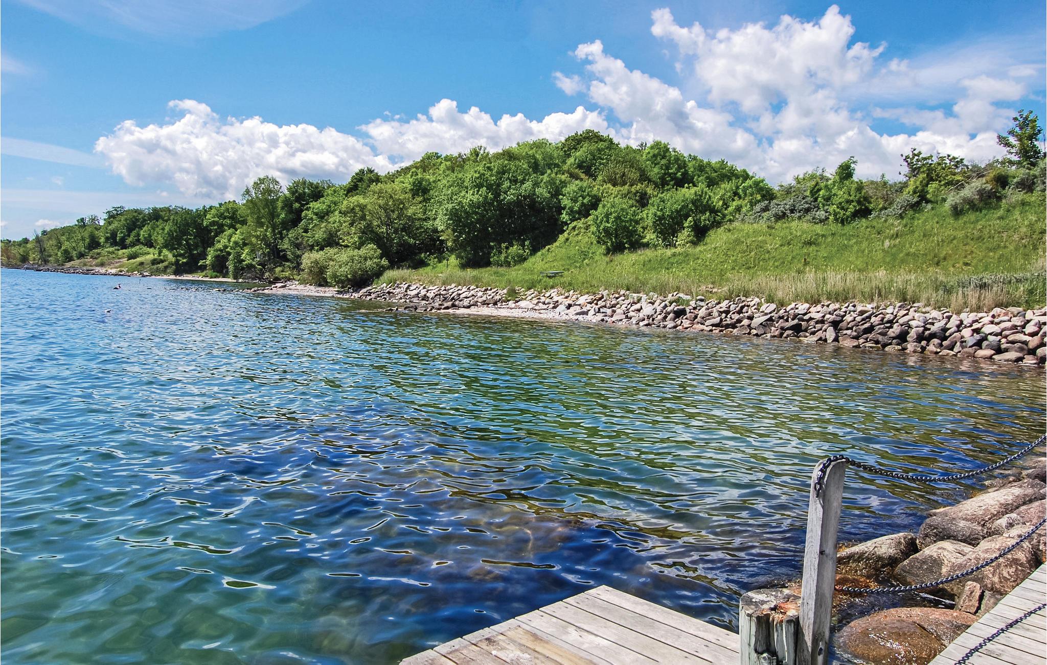 Architektonisch interessantes Ferienhaus in einer einladenden Freizeithaussiedlung. Durch die Dachkonstruktion besitzt das Wohnzimmer hohe Fenster und es ist auch zur Küche offen sowie zum Hängeboden. Der Hängeboden wird sicher manchen als bevorzugter Aufenthaltsort dienen. Auf ihm sind gute Matratzen, die auch für Erwachsene geeignet sind. Im großen Badezimmer liegen Whirlpool und Sauna. Beim Grillplatz vor der Tür liegen Fliesen. Gute Gartenmöbel auf der Terrasse werden die Grillabende im Freien verschönern. Entspannen Sie hier und genießen Sie Ihren Urlaub nicht weit vom Strand. Am Strand steht im Sommer ein Badesteg.