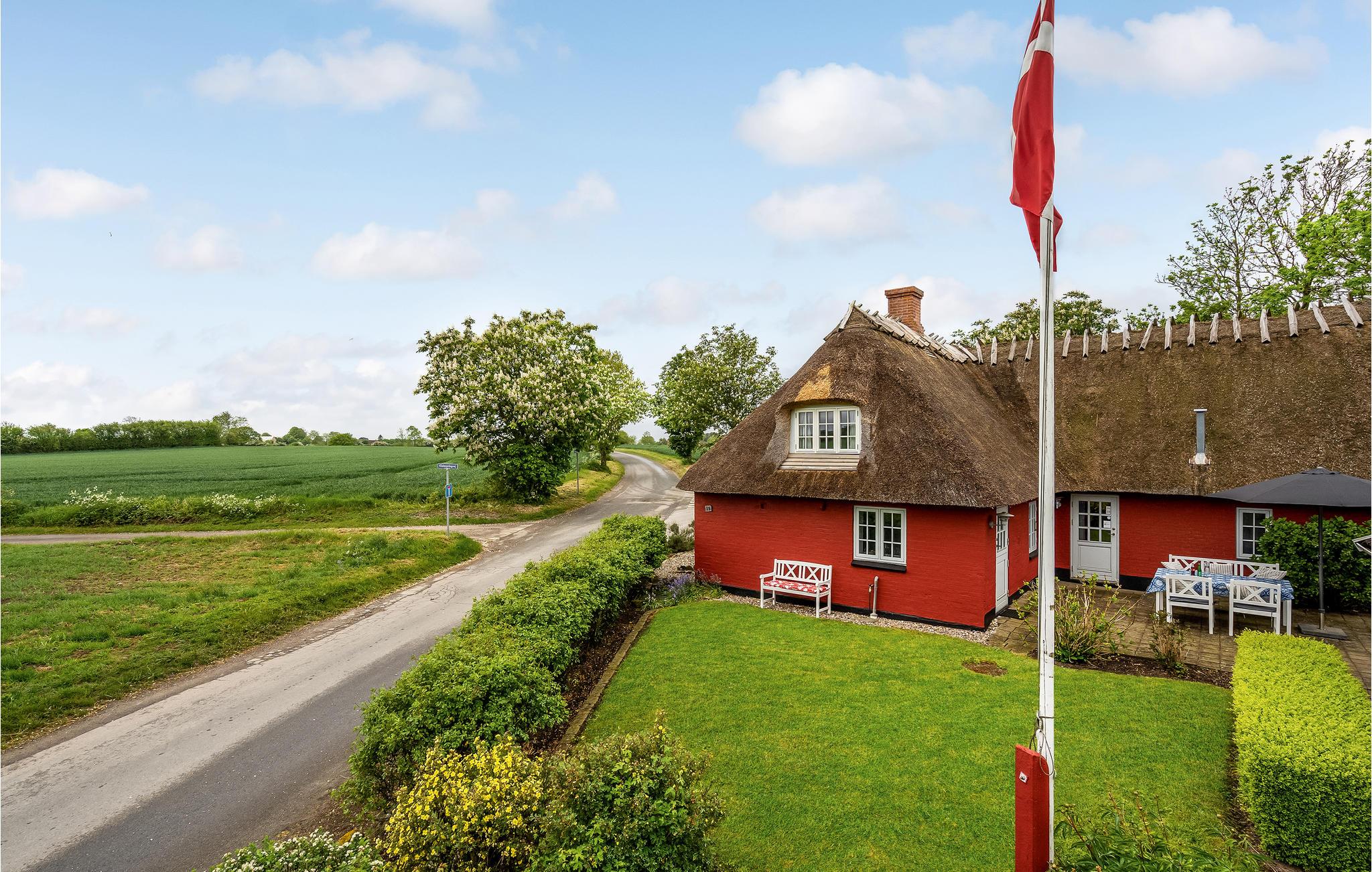 Gemütliches Reetdachhaus mit Sauna und Terrasse auf der Insel Als, ideal für Entspannung und Naturerlebnisse.