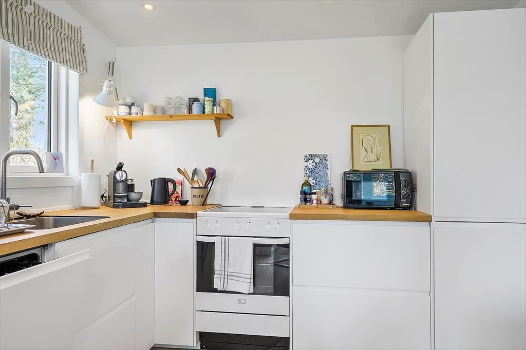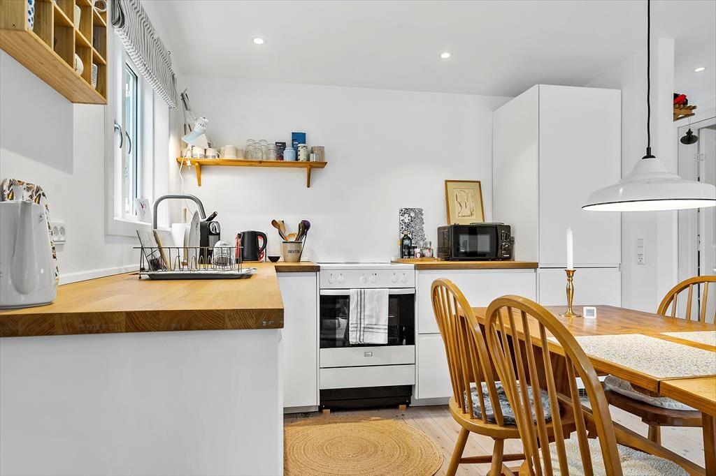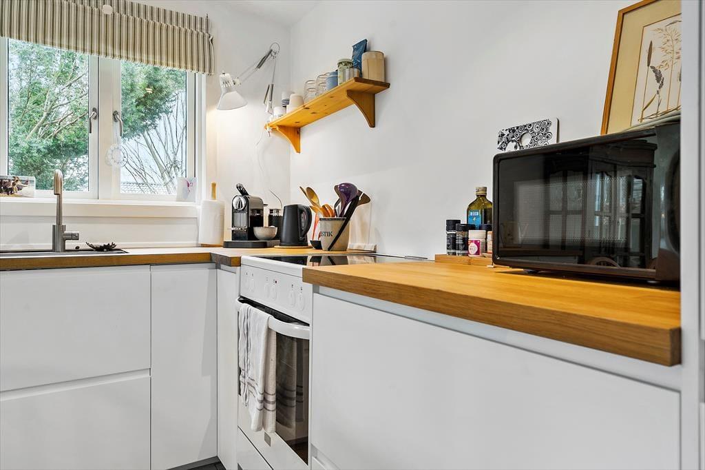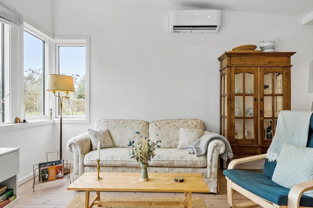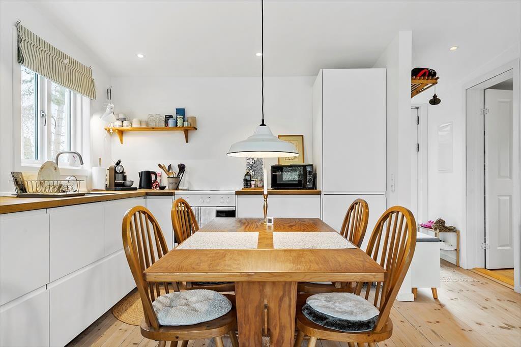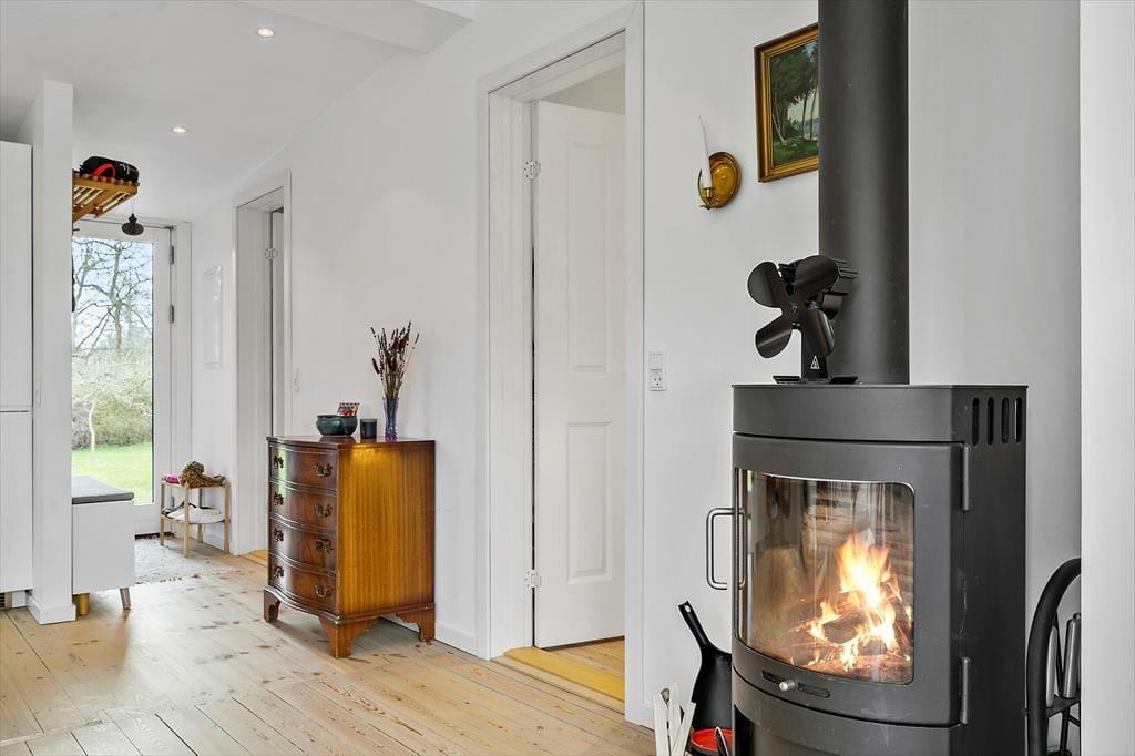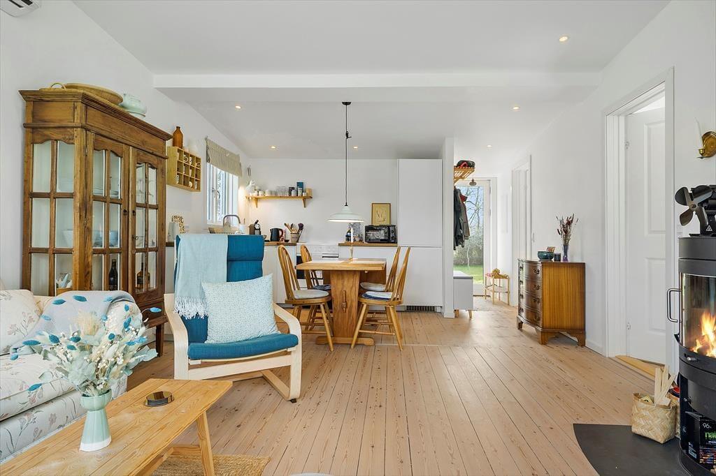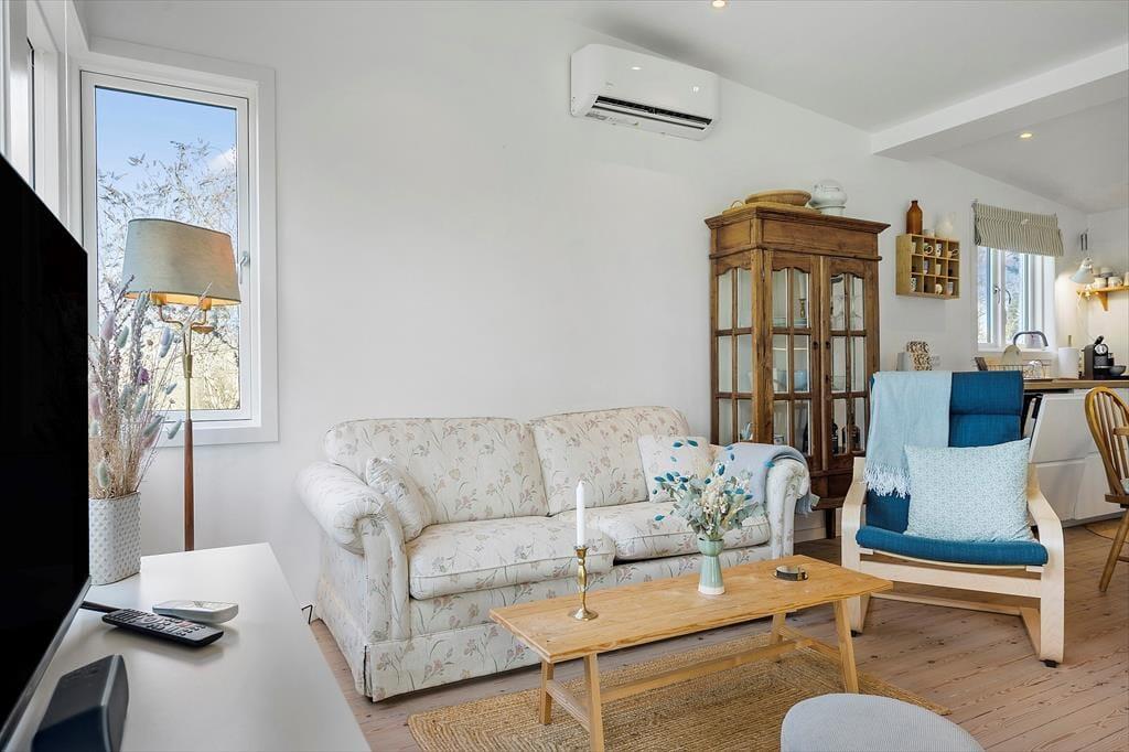 Das Haus ist hell und einladend mit hell gehobelten Böden und man fühlt sich sofort willkommen. Die neue Küche und das Wohnzimmer sind in einem, und hier können Sie gemeinsam die Mahlzeiten des Tages genießen, während Sie die Erlebnisse des heutigen oder nächsten Tages planen. An kühleren Tagen können Sie sich im Wohnzimmer vor dem Holzofen versammeln, ein gutes Buch lesen oder einen Film schauen und eine Tasse Kaffee oder ein Glas Wein genießen. Außerdem gibt es ein schönes Schlafzimmer mit einem Doppelbett und ein weiteres Zimmer mit einem ausziehbaren Bett für 2 Personen. Hier können Sie sich bequem zurückziehen und ein Nickerchen machen. Das Badezimmer ist neu und verfügt über eine Toilette, ein Waschbecken und eine Dusche.