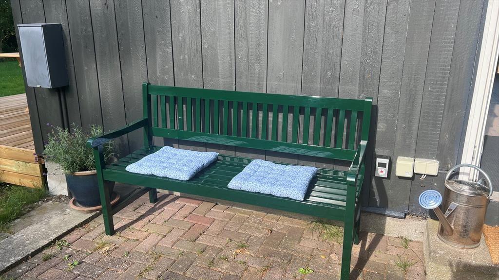 Es gibt zwei teilweise überdachte Terrassen mit Zugang vom Wohnzimmer und der Eingangshalle und einen großen Garten mit guter Randbepflanzung. Hier können Sie die warmen Tage und lauen Abende genießen und wenn der Tau fällt, können Sie unter die Decke ziehen und die Stille genießen und die Ruhe einkehren lassen. AUFMERKSAMKEIT! Im Frühjahr 2025 wird dort, wo sich die jetzige Terrasse befindet, eine neue Holzterrasse entstehen. Die neue Holzterrasse wird rund um den Giebel entlang der Sonnenseite des Hauses weitergeführt.