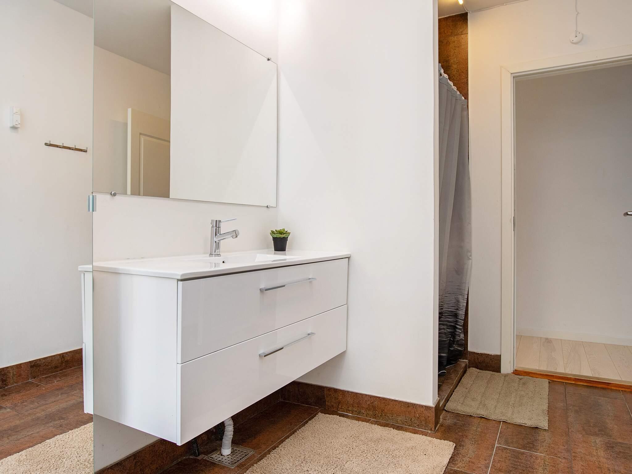 Das Erdgeschoss gibt es einen großen Eingangsbereich mit einer Wendeltreppe hinauf in die 1. Etage. Von der Eingangsdiele aus haben Sie im Parterre Zugang zu einem großen Schlafzimmer auf der einen Seite und auf der anderen Seite betreten Sie das große Badezimmer mit Fußbodenheizung.