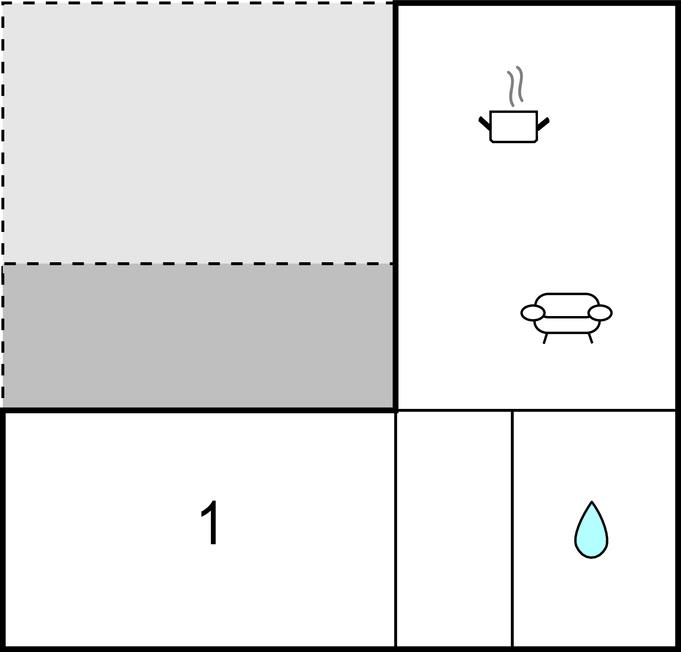 Badezimmer (nr. 1) - WC. Warmes und kaltes Wasser. Dusche