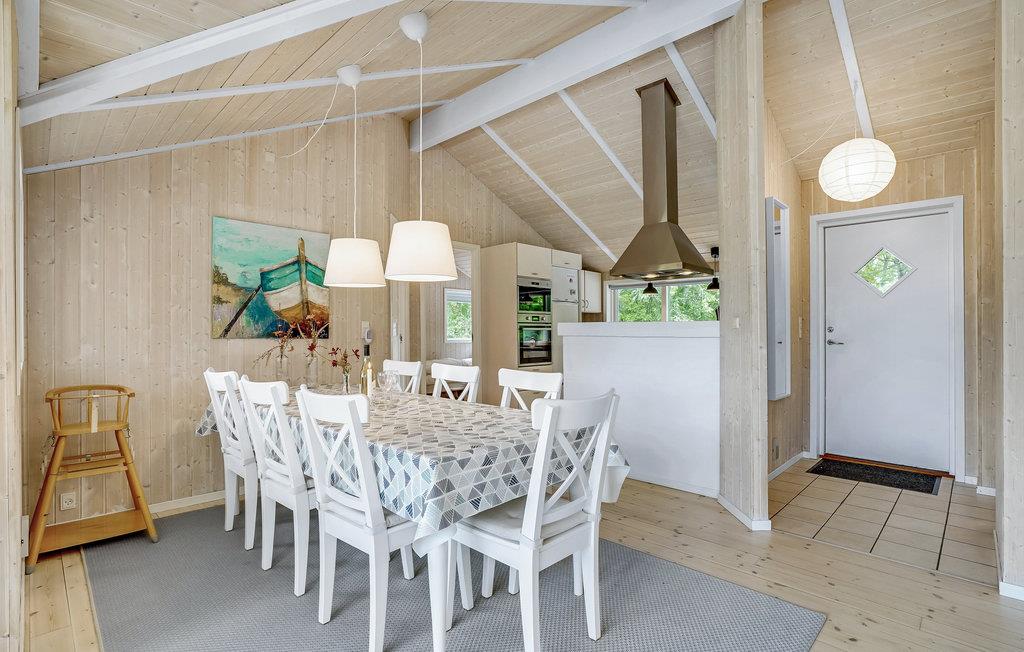 Das Haus ist gut für 7 Personen mit 4 Schlafzimmern eingerichtet, von denen zwei mit einem Doppelbett ausgestattet sind, eines mit 2 Einzelbetten und das letzte Zimmer mit einem Einzelbett. Die helle, offene Küche geht direkt in das Wohnzimmer über, das sowohl eine Wärmepumpe als auch einen Holzofen als zusätzliche Wärmequelle hat. Das ganze Haus ist mit energiesparenden Elementen, Sommer- und Winterdecken ausgestattet. Darüber hinaus gibt es während des gesamten Urlaubs kostenloses Brennholz für den Ofen. Highspeed Glasfaserinternet (150/150Mbit) mit WLAN im ganzen Haus.