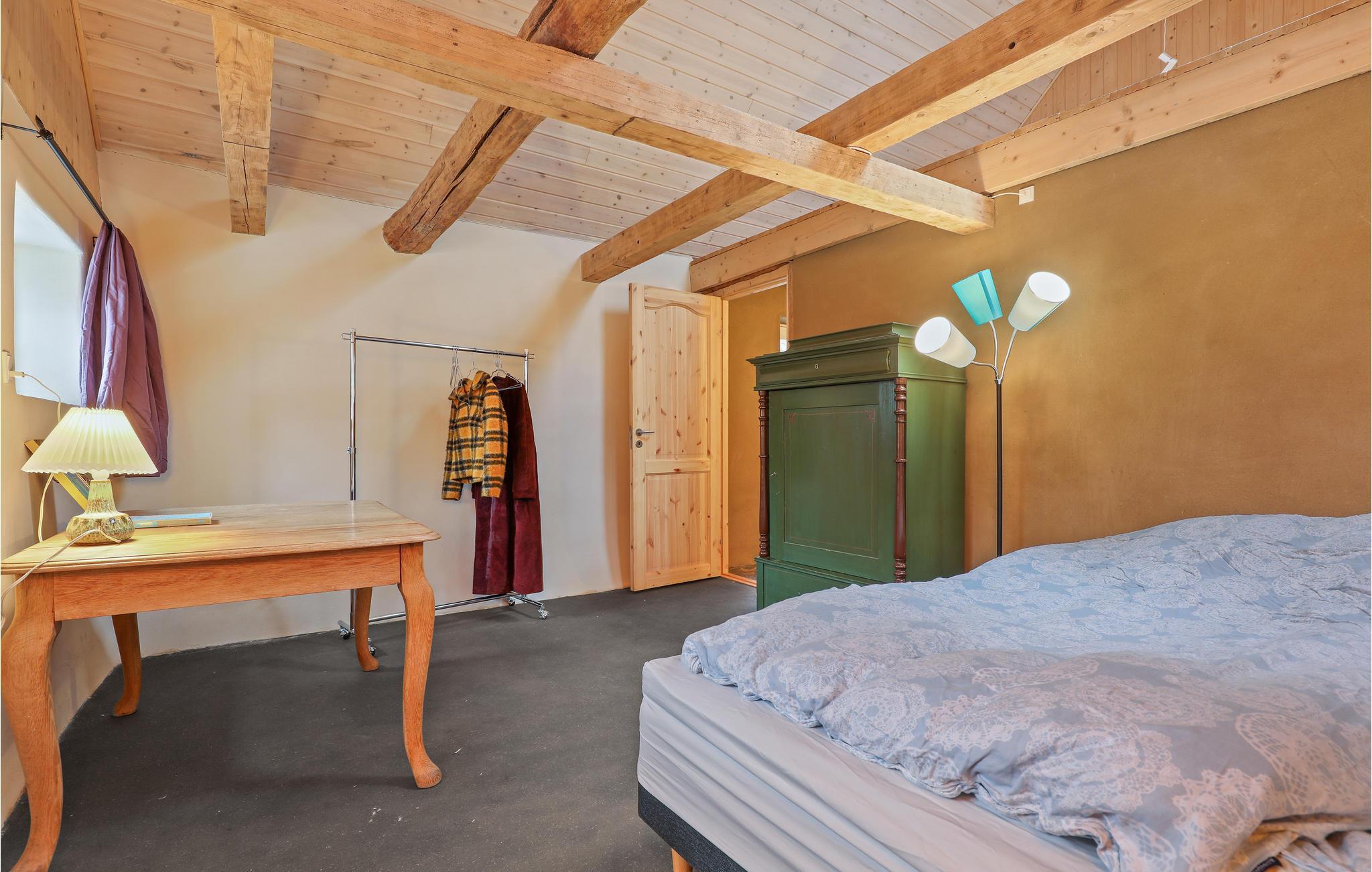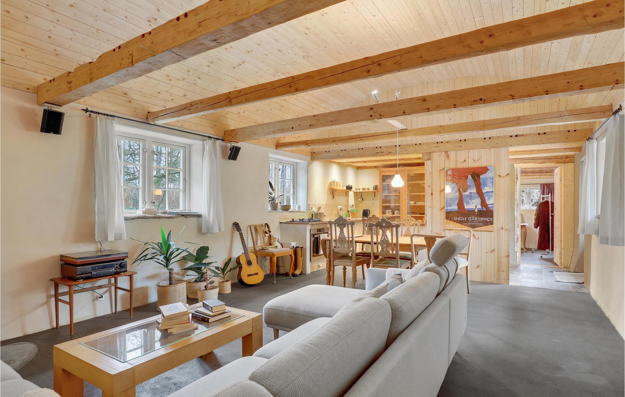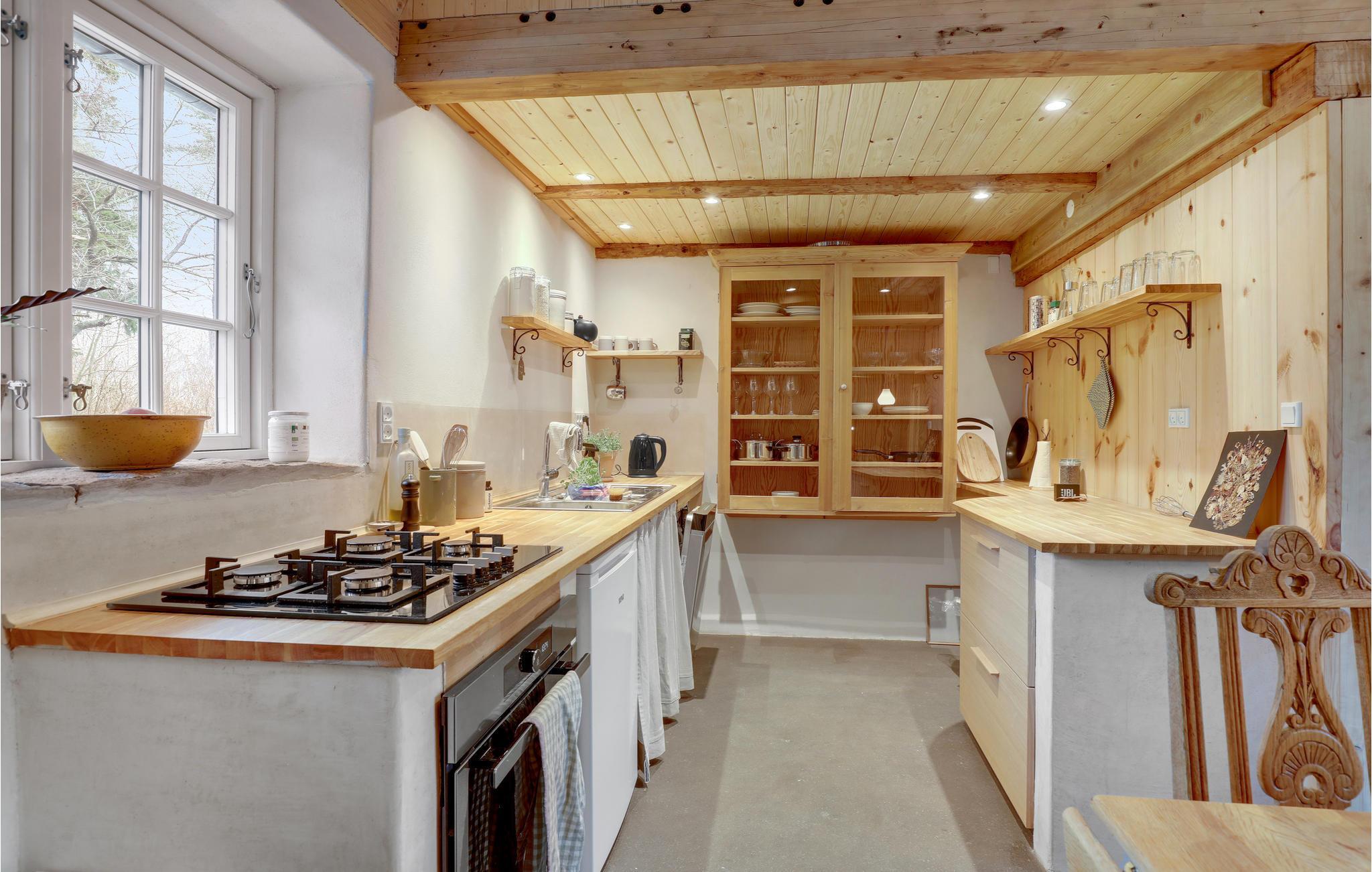 In einem ländlichen, naturschönen Gebiet finden Sie zwischen biologisch bewirtschafteten Feldern diese stimmnungsvolle Ferienwohnung. Beim Bau wurde nachhaltige Materialien von hoher Qualität verwendet. Diese rustikale, mit offener Sichtbalkendecke und Teppichboden ausgestattete Ferienwohnung bietet Ihnen eine gemütliche Atmosphäre für Ihren Urlaub auf Bornholm. Der Kaminofen und die Fußbodenheizung sorgen für eine wohlige Wärme, während Sie sich diversen Kartenspielen oder spannenden Unterhaltungen mit Ihren Liebsten widmen.