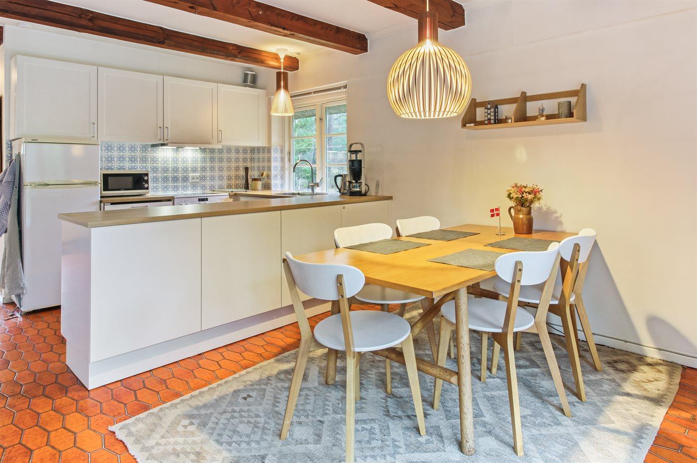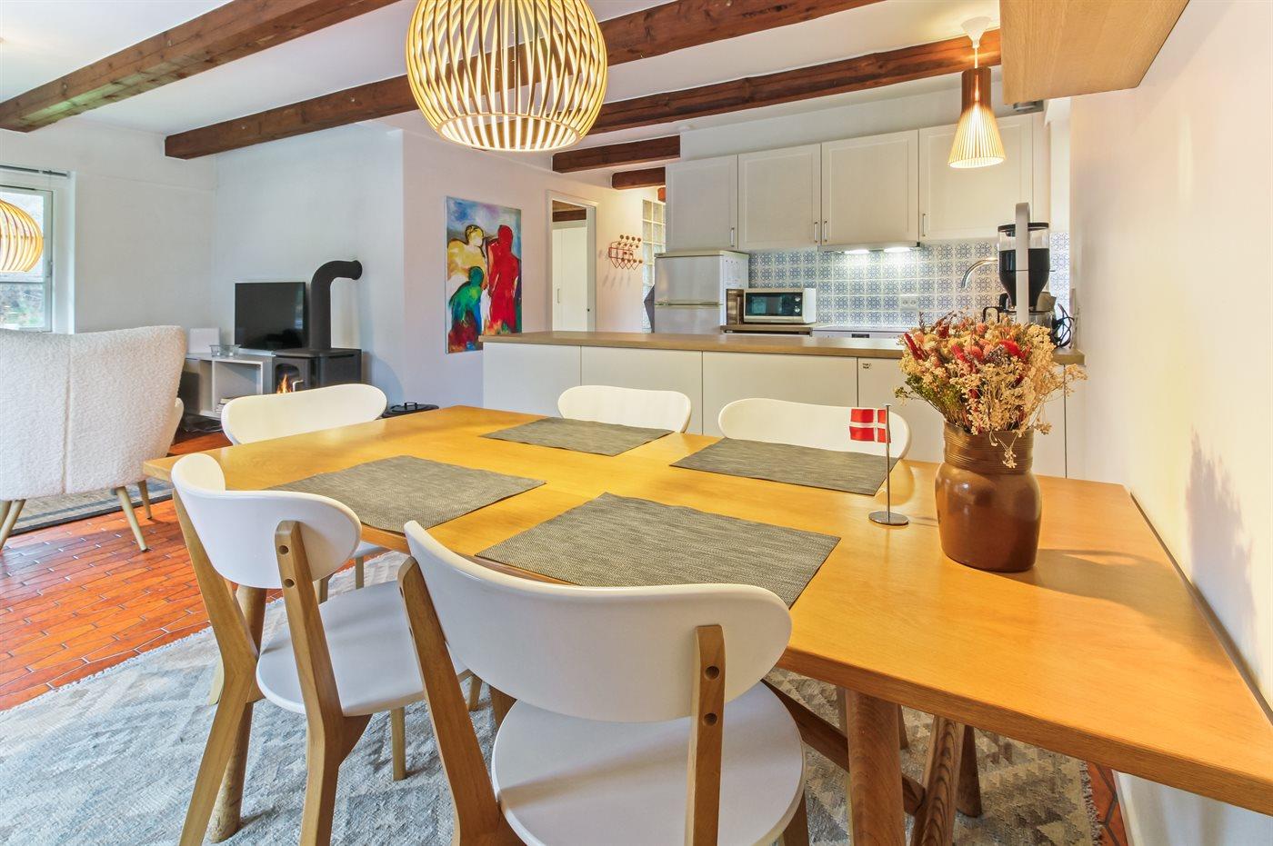 Das Ferienhaus eignet sich für 5 Personen. Die Ferienunterkunft hat eine Wohnfläche von 96 m², ist 2-stöckig, und wurde 1970 gebaut. 2019 wurde die Ferienunterkunft teilweise renoviert. Es ist erlaubt 1 Haustier mitzubringen. Die Ferienunterkunft ist mit einer energiefreundlichen Luft-Luft-Wärmepumpe ausgestattet. Die Ferienunterkunft ist mit Waschmaschine ausgestattet. Tiefkühlmöglichkeit mit 12 Liter Nutzinhalt. Es gibt außerdem einen Kaminofen. Für die jüngsten Feriengäste ist 1 Kinderhochstuhl vorhanden.