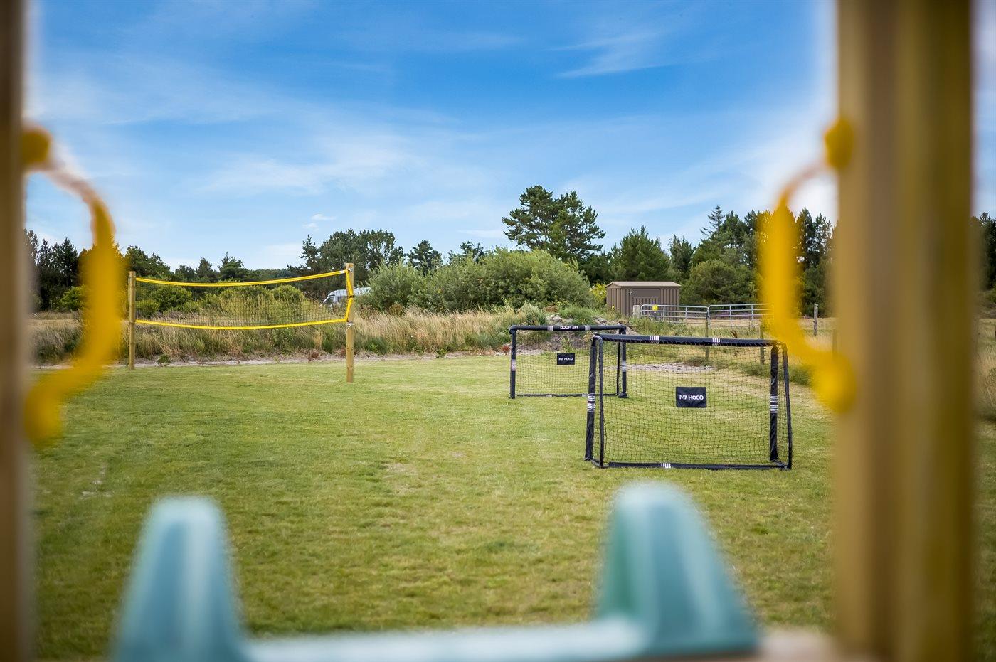 Der Außenbereich bietet viel Platz für Spiel und Erholung an. Das große Grundstück ist ideal für Kinder und Haustiere. Es gibt einen Spielturm, ein Volleyballnetz und Fußballtore. Die große, nach Süden ausgerichtete Terrasse verbindet den Poolbereich, das Küchen-Wohnzimmer und den Multiraum. Hier könnt ihr im Freien grillen oder einfach die Ruhe genießen. Eine überdachte Terrasse sorgt dafür, dass ihr auch bei nicht so gutem Wetter draußen sitzen könnt. Auf dem Hofplatz gibt es ausreichend Parkplätze sowie eine Ladestation (Typ-2-Stecker) für Elektroautos.