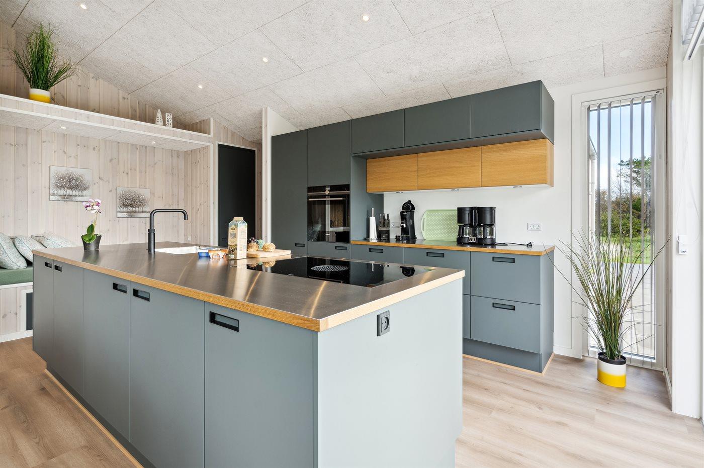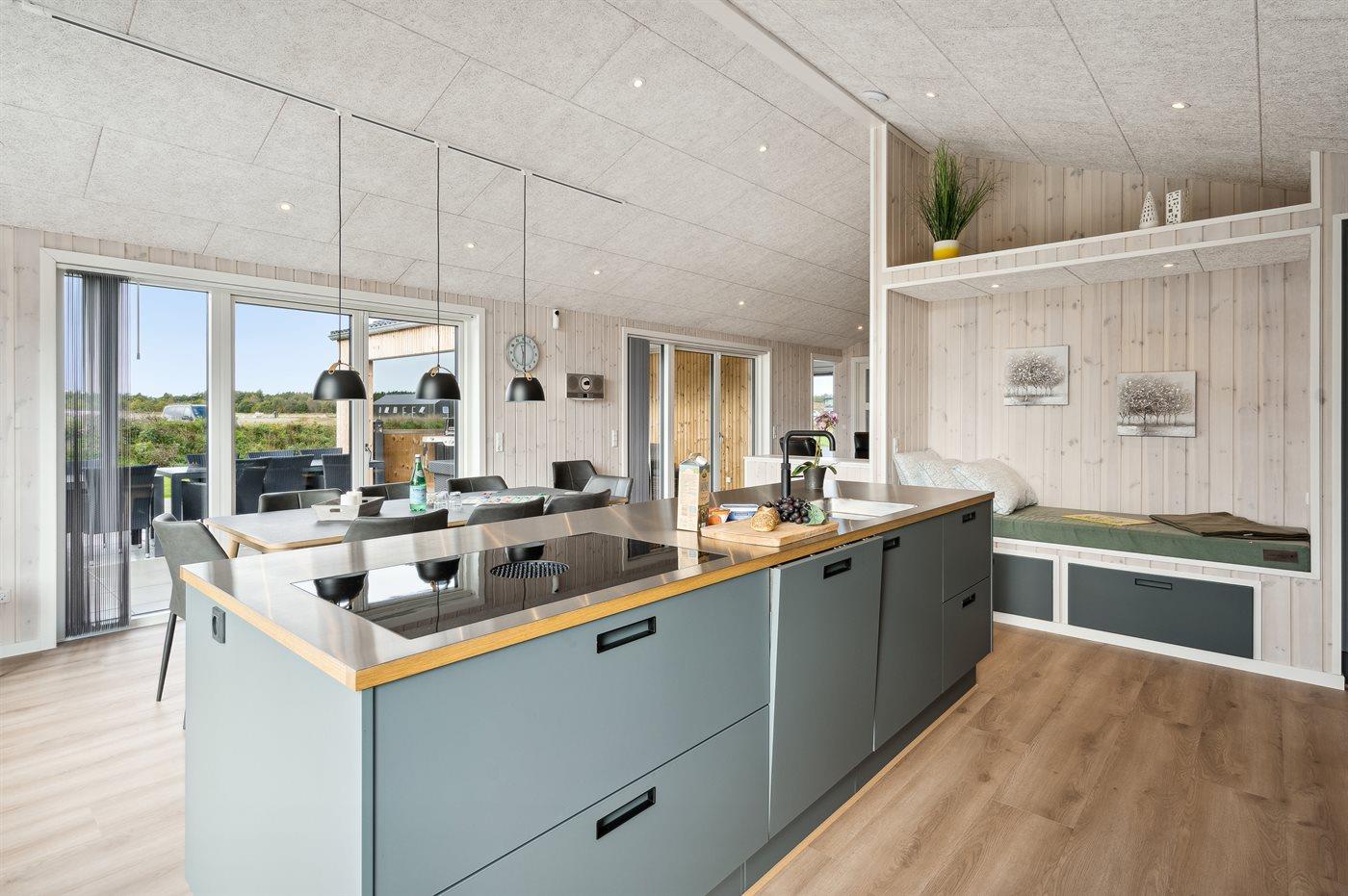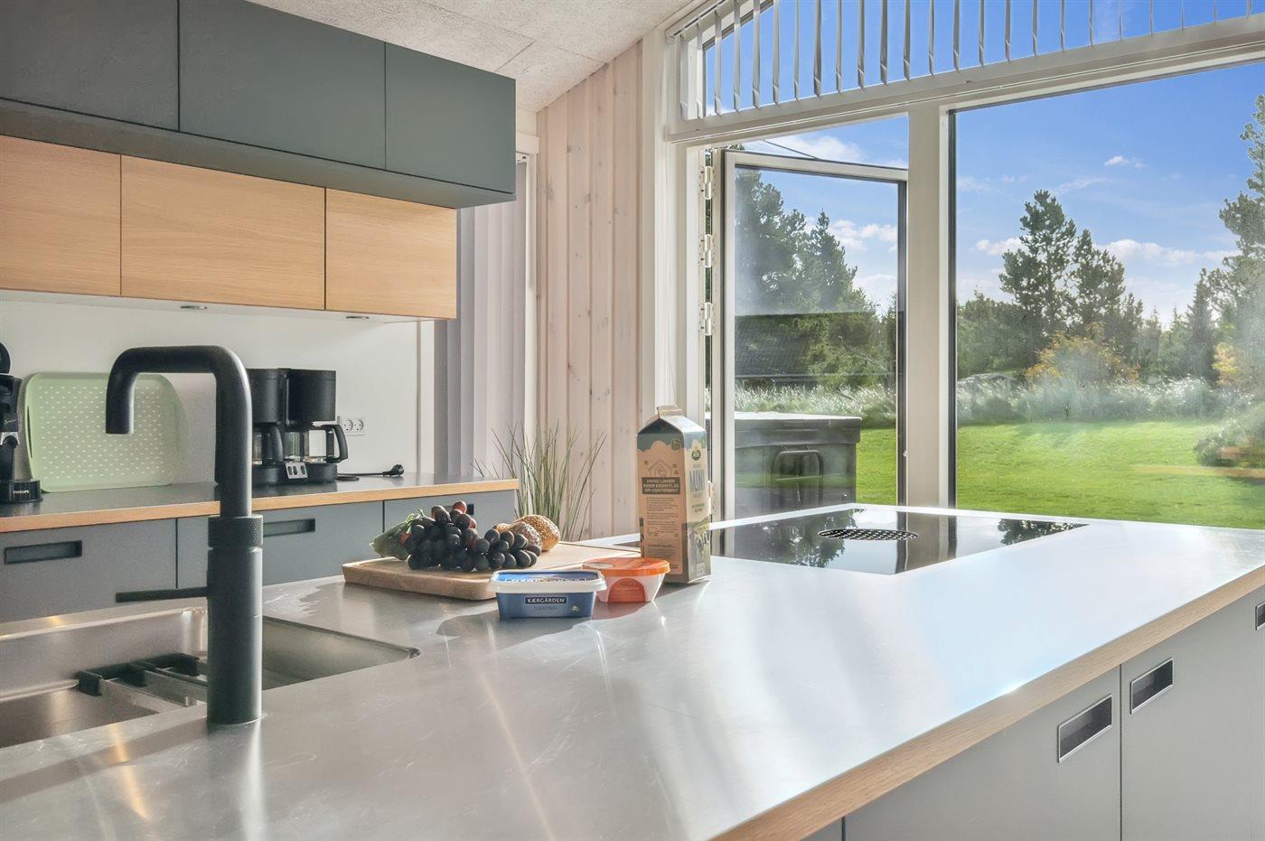 Die Küche ist mit Kühlschrank ausgestattet. Außerdem gibt es 4 Induktions-Kochzonen, Umluftofen, Mikrowelle sowie Geschirrspüler. Außerdem ist ein Quooker installiert.