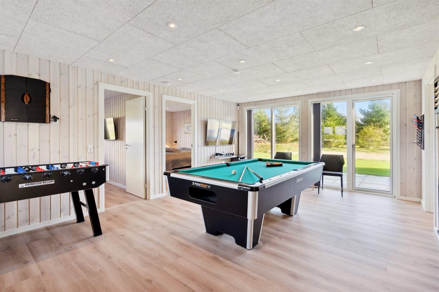 Hobbyraum mit: Billard. Pooltisch. Tischtennis. Dart. Arcade-Spielautomat. Bobspiel.