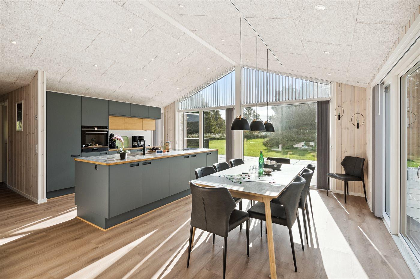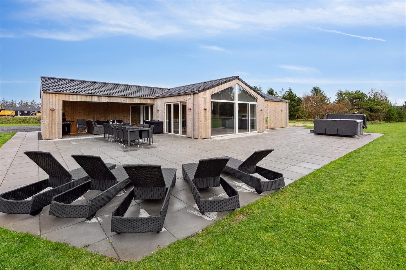 Hübsches, neues Ferienhaus in Kromose, unweit vom Wattenmeer. Das Ferienhaus verfügt über einen offenen Koch-Wohnbereich sowie 5 schöne Schlafzimmer und 2 Bäder mit Duschkabine. Außerdem hat das Haus einen Aktivitätsraum und einen schönen Outdoor-Whirlpool sowie Trampolin und Hüpfkissen.