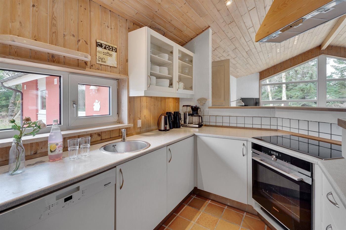 Die Küche ist mit Kühlschrank ausgestattet. Außerdem gibt es 4 Keramik-Kochfelder, Umluftofen sowie Geschirrspüler.