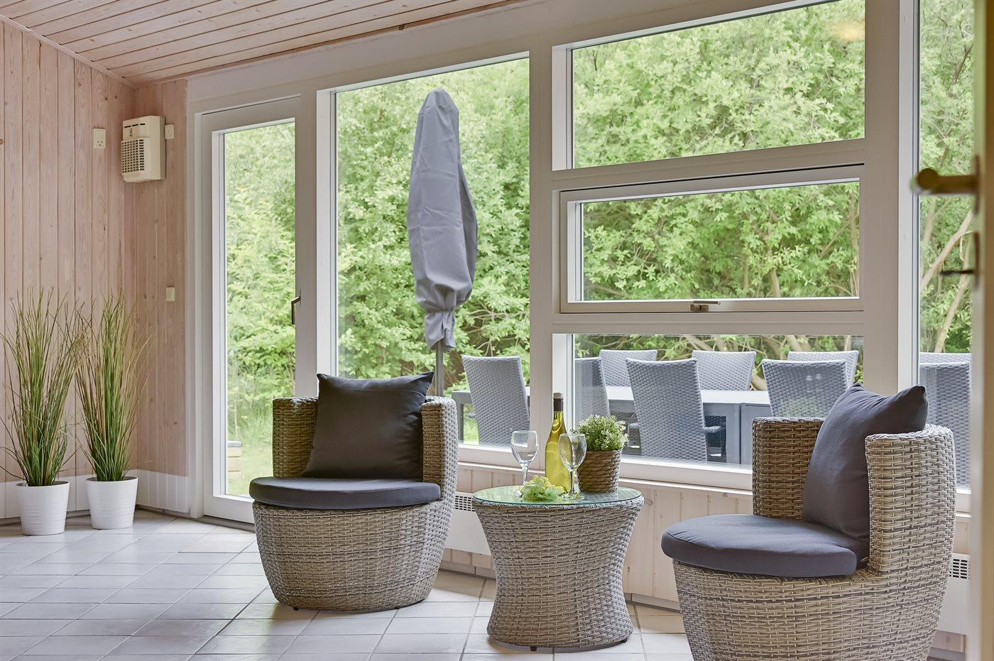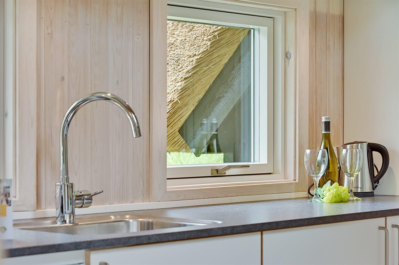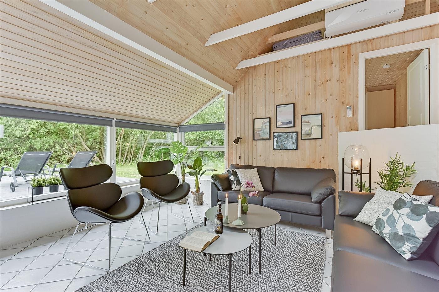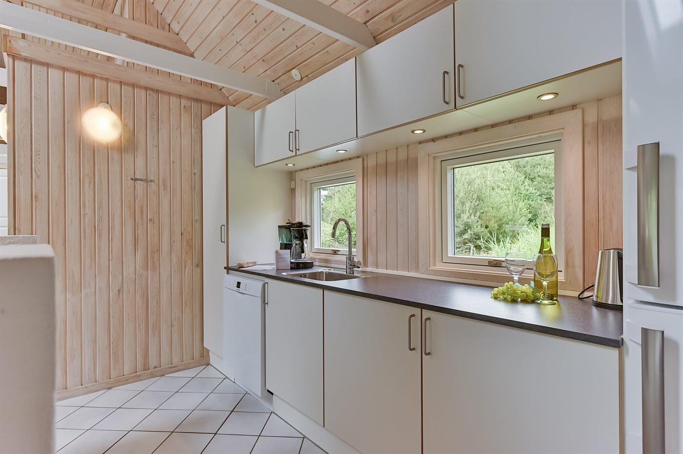 Dieses Ferienhaus mit Reetdach liegt auf einem von Bäumen umgebenen Naturgrundstück - nicht weit vom schönen, breiten Strand entfernt. Zum Haus gehört eine große, ungestörte Terrasse mit Gartenmöbeln und gutem Windschutz. Das Wohnzimmer mit großer Fensterfront liegt in versetzter Ebene. Übrigens: Zusätzlich zu den 5 Schlafzimmern gibt es 2 Schlafplätze in Einzelbetten im offenen Obergeschoss.
