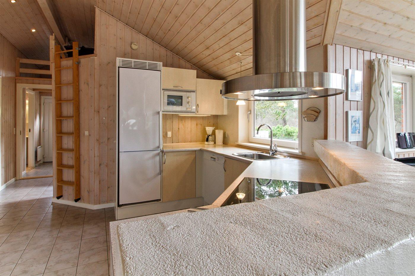 Die Küche ist mit Kühlschrank ausgestattet. Außerdem gibt es 4 elektrische Kochplatten, Backofen, Mikrowelle sowie Geschirrspüler.