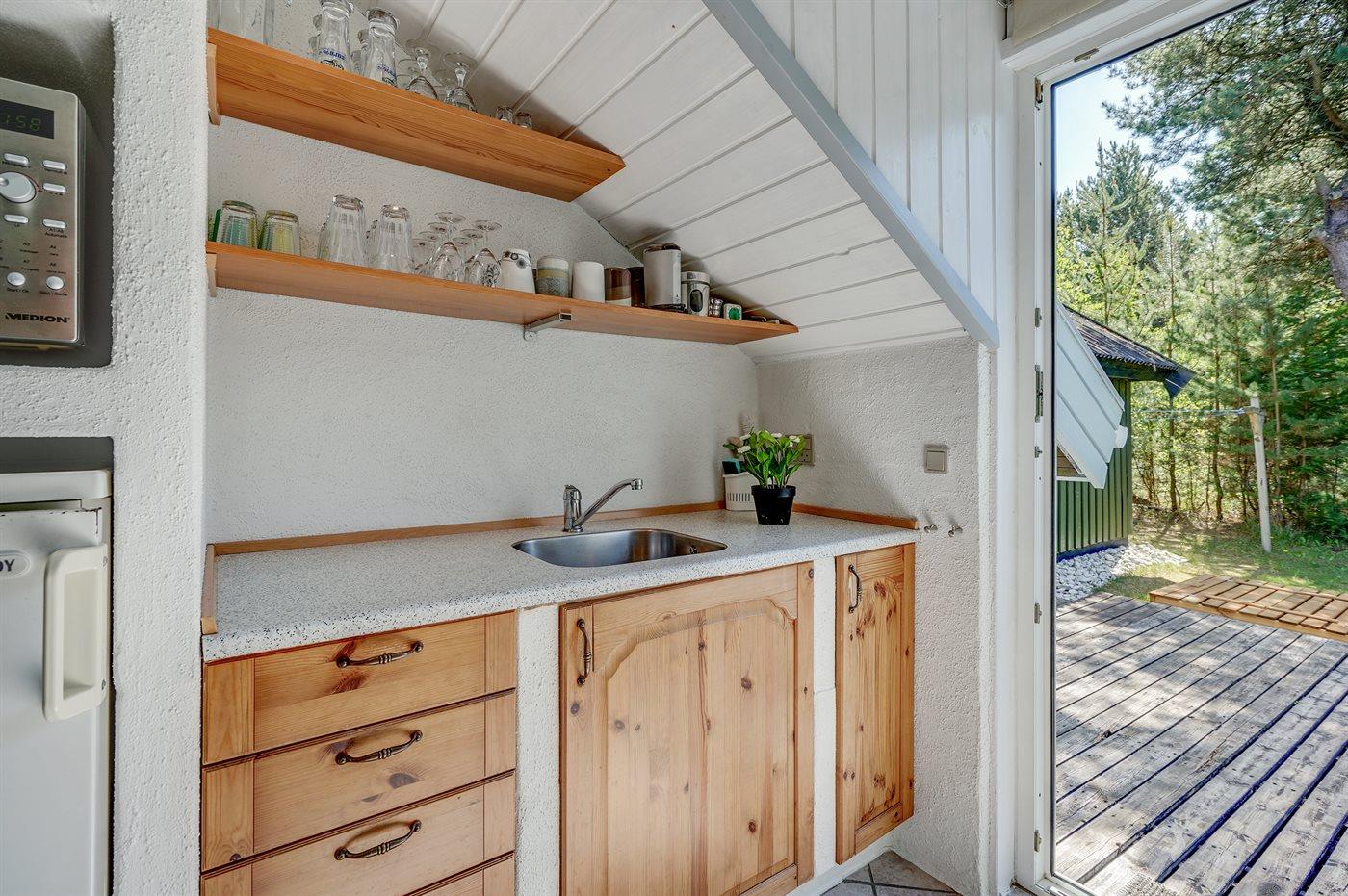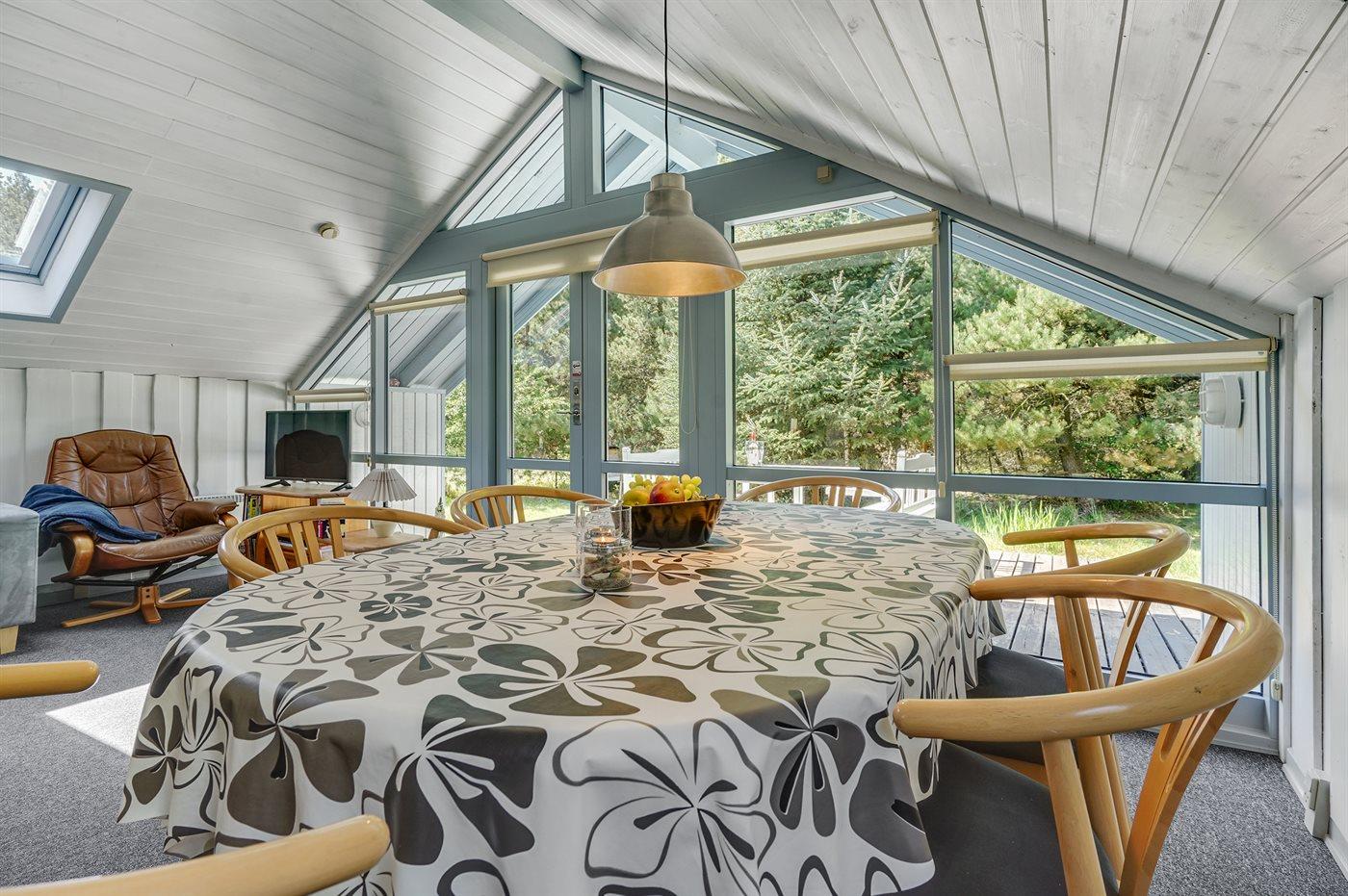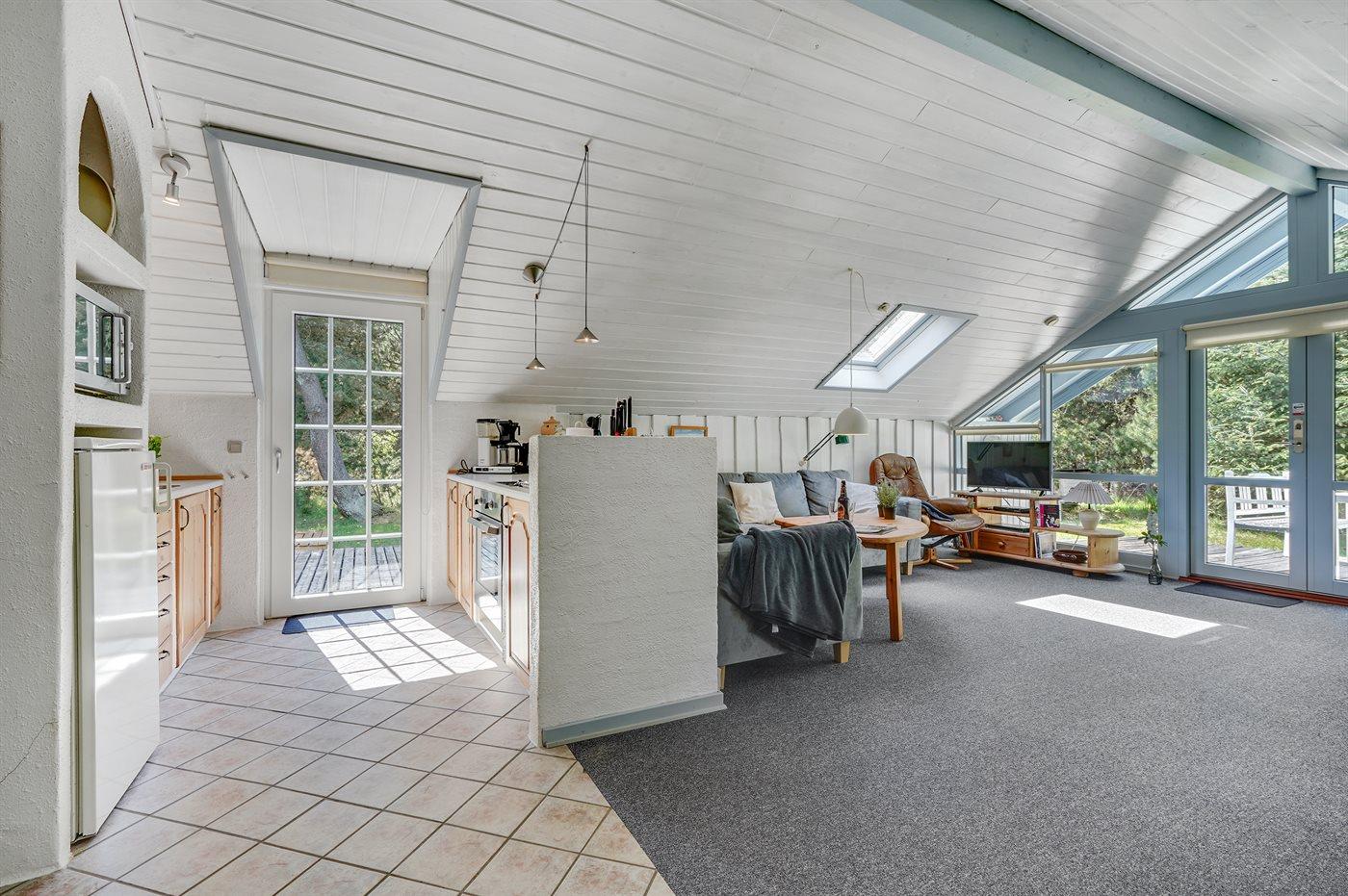 Dieses gemütliche, kleine Ferienhaus liegt zurückgezogen auf einem großen Grundstück mit Bäumen und verschiedener Bepflanzung. Das Haus liegt in naturschöner Umgebung mit einem reichen Vogelleben und mit der Möglichkeit die Rehe am Futterhäuschen zu betrachten, das sich nicht weit vom Haus entfernt befindet. Es stehen schöne und ungestörte Terrassen zur Verfügung und nicht weit vom Haus entfernt liegt der kinderfreundliche Badestrand, Restaurants, eine Golfanlage und der Wald, der zu lange Spaziergänge einlädt.