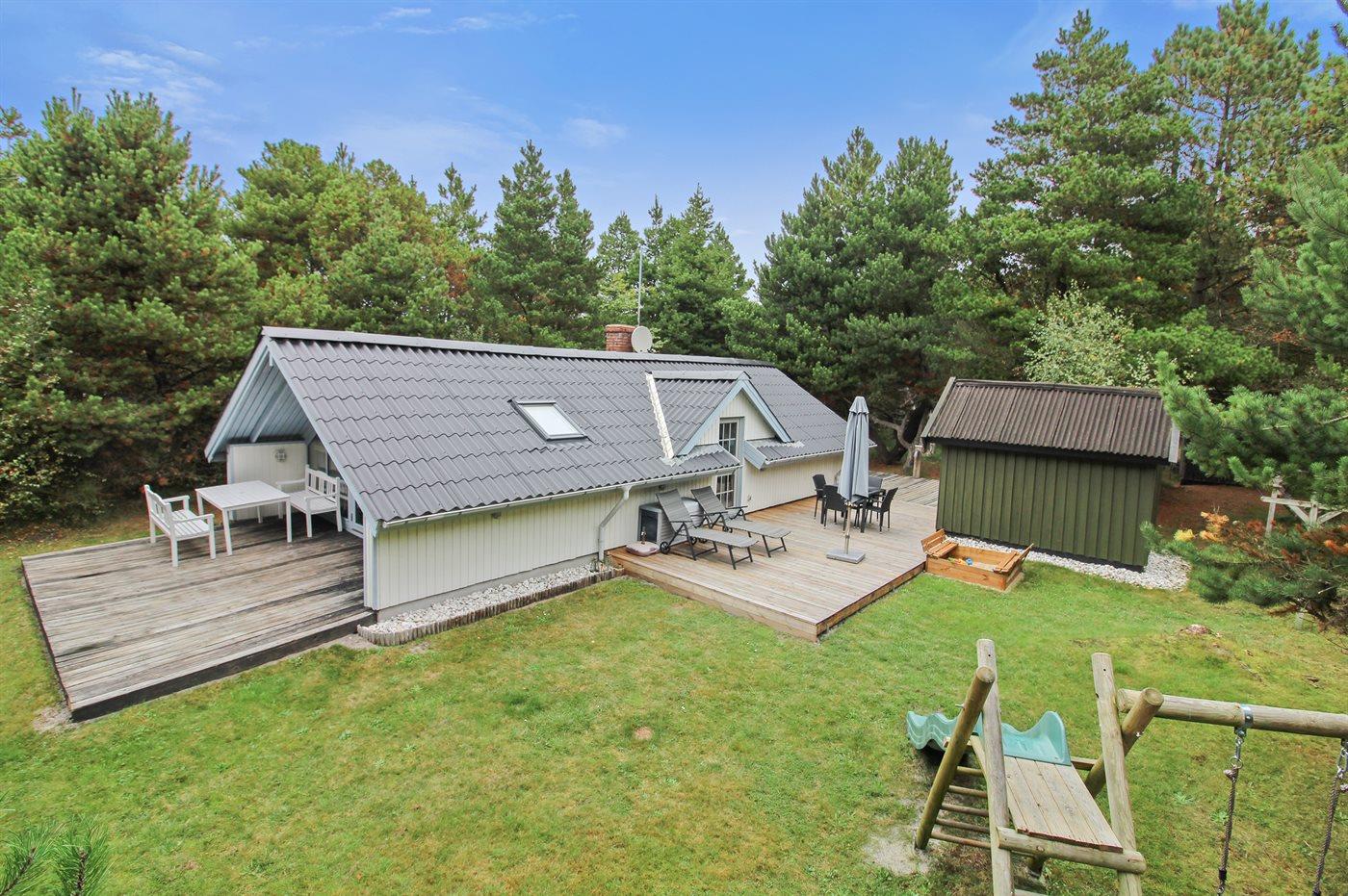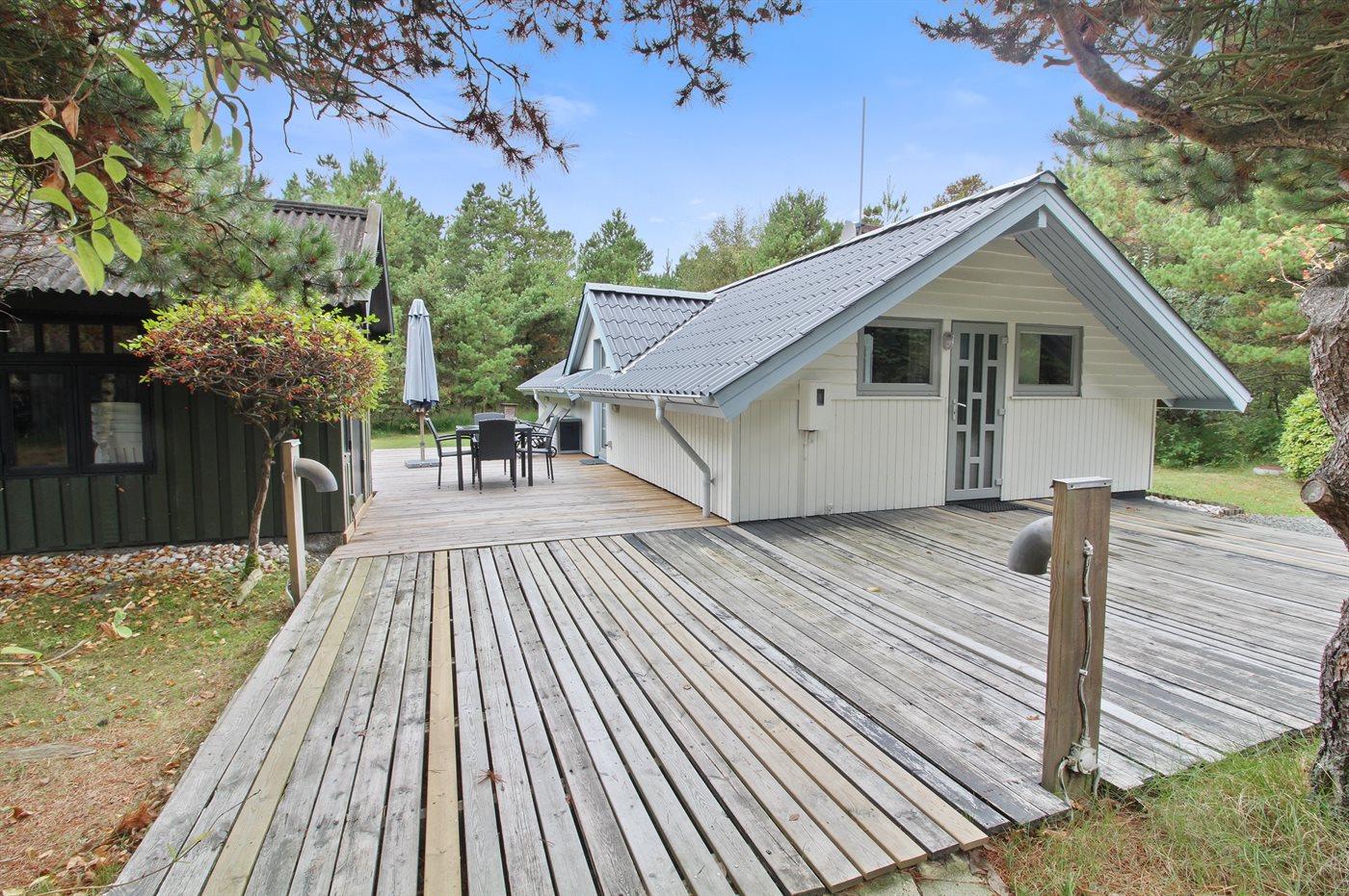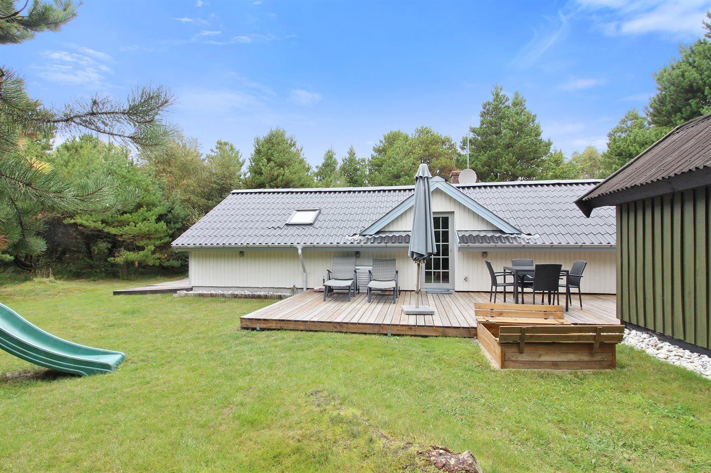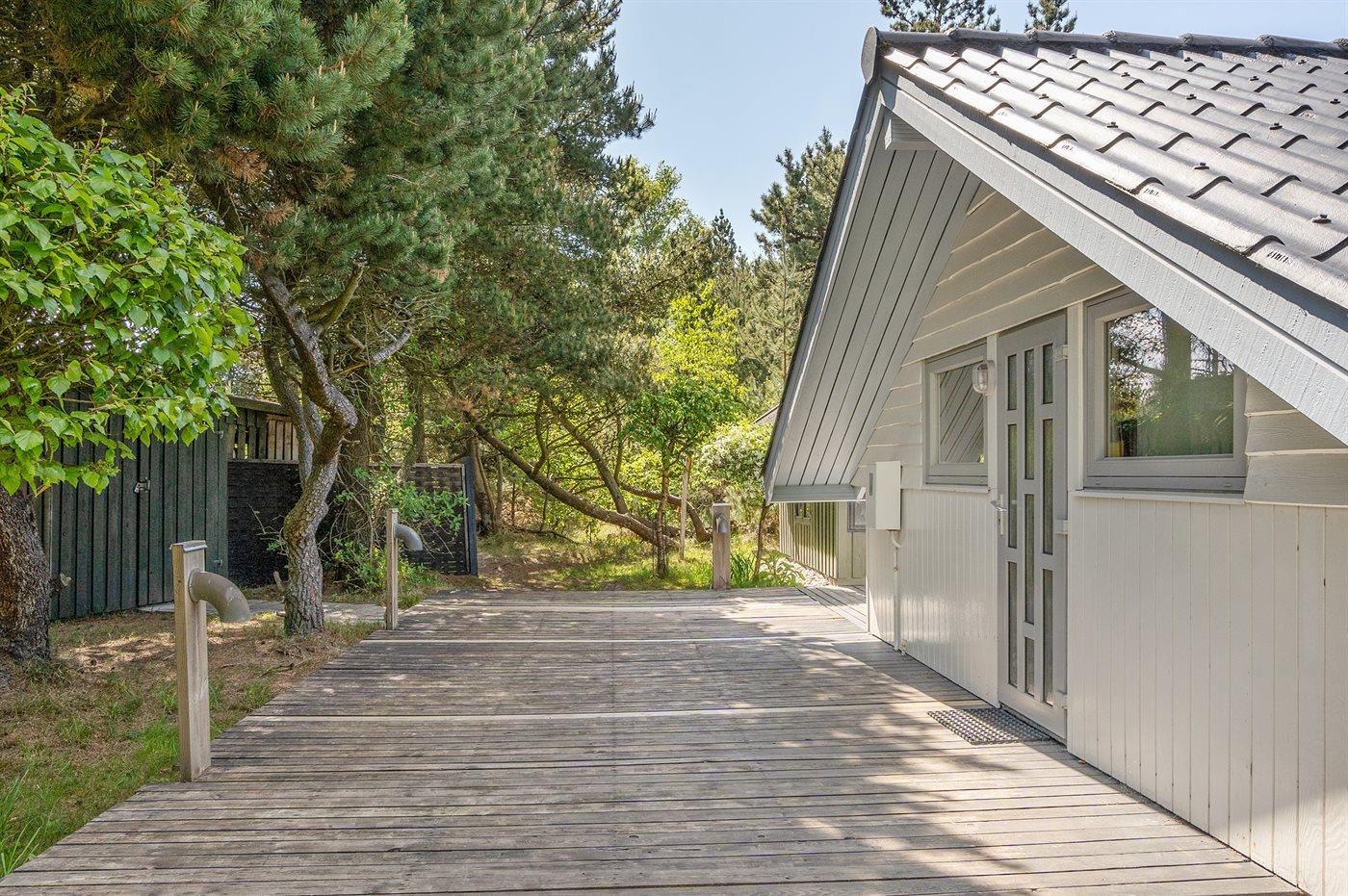 Die Ferienunterkunft liegt auf einem 2500 m² großen Gründstück, das in einem Wald/Plantage liegt. Die Entfernung zum Meer beträgt 1000 m.Die Entfernung zum Wattenmeer beträgt 2200 m. Die nächste Einkaufsmöglichkeit liegt 2200 m entfernt. Es steht ein 70 m² Terrassenareal zur Verfügung. Schaukel. Sandkasten. Rutsche. Parkplatz auf dem Grundstück.