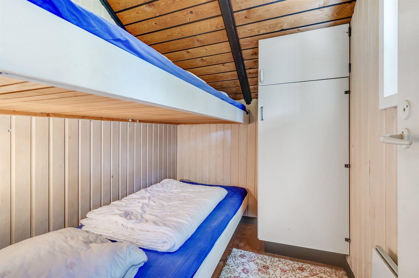 Die Schlafplätze verteilen sich auf 2 Schlafräume. 2 Schlafplätze in einem Doppelbett. 2 Schlafplätze in einem Etagenbett.