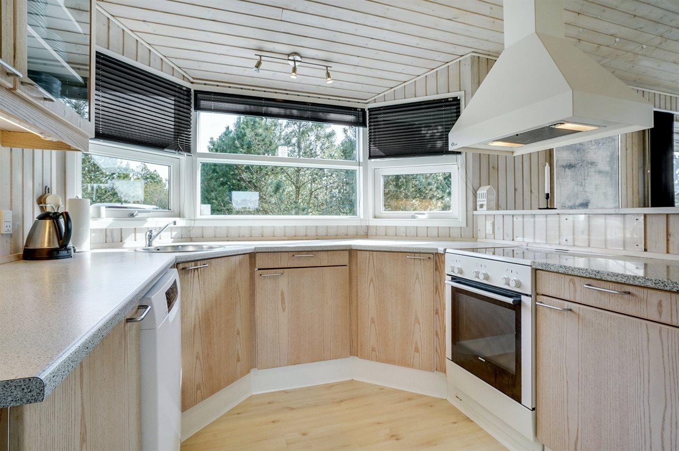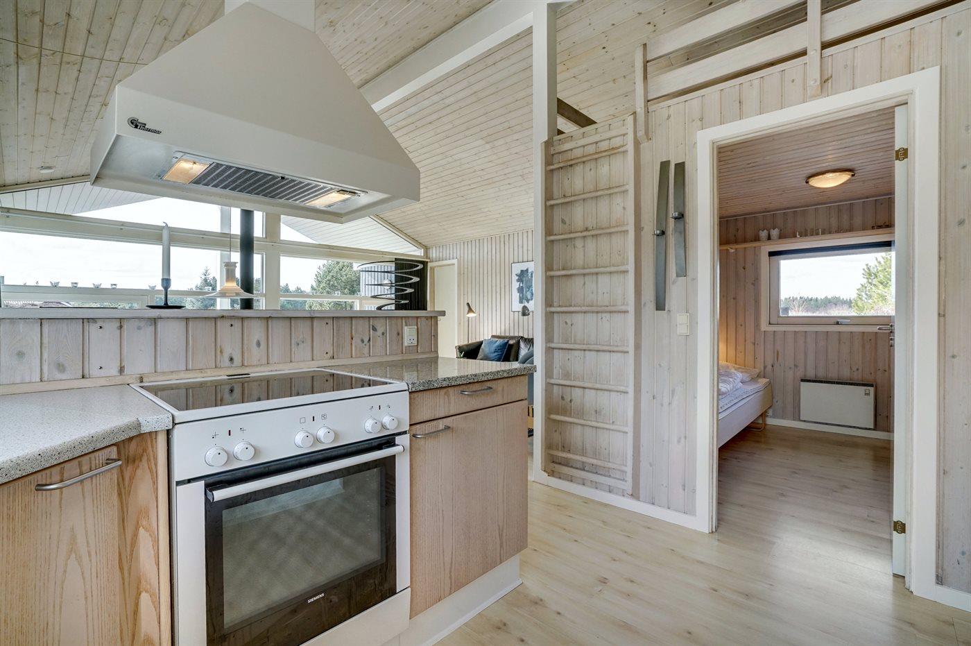 Die Küche ist mit Kühlschrank ausgestattet. Außerdem gibt es 4 elektrische Kochplatten, Backofen, Mikrowelle sowie Geschirrspüler.
