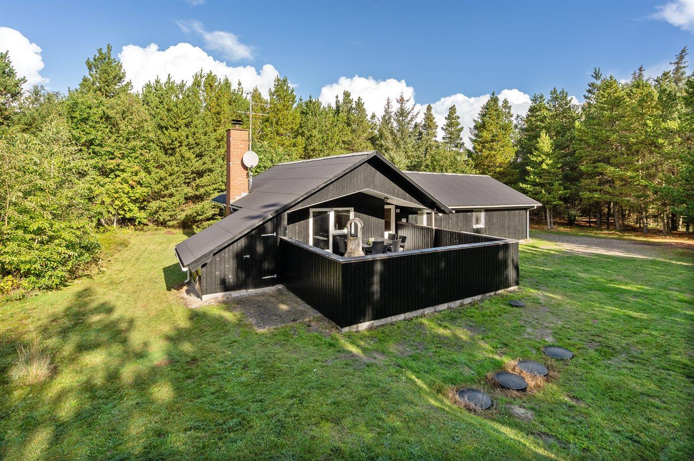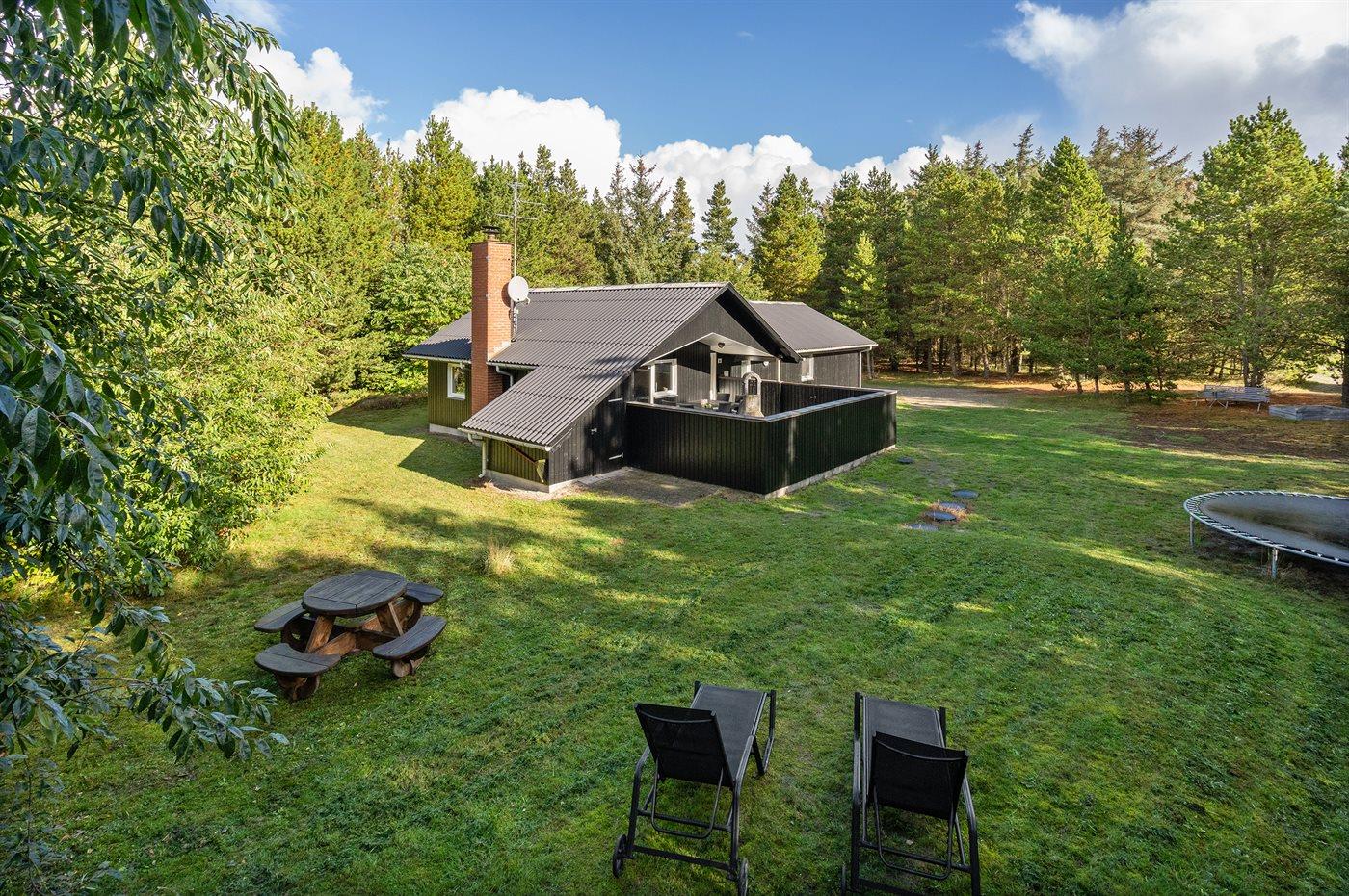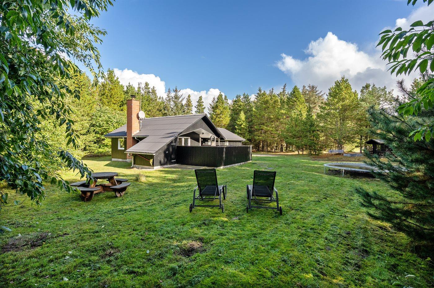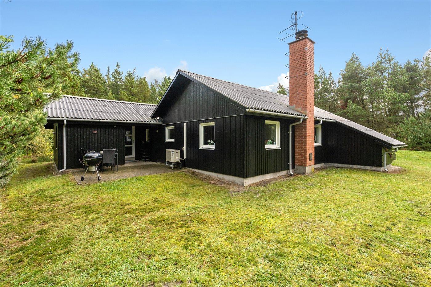 Dieses prachtvolle Ferienhaus aus Holz, 1999 gebaut, liegt auf einem großen, ungestörten Naturgrundstück. Zum Haus gehört eine schöne, abgeschirmte und teils überdachte Terrasse mit Gartenmöbeln. 2 schöne, große Badezimmer mit Dusche und Fußbodenheizung. Eins ist weiter mit 2-Pers. Whirlpool und direktem Zutritt zur Sauna ausgestattet, und in dem 2. Badezimmer gibt stehen Waschmaschine und Wäschetrockner zur Verfügung. Helle Küche mit u. a. Tiefkühlgerät, Geschirrspüler und Mikrowelle. Das gemütliche Wohnzimmer ist mit Qualitätsmöbeln sowie Kaminofen, TV mit Satellitenanschluss, DVD-Spieler und Stereoanlage mit CD-Spieler eingerichtet. Die Schlafplätze verteilen sich auf 4 Schlafzimmer; 2 mit Doppelbett, TV und DVD-Spieler, sowie 2 mit je 2 Einzelbetten. Seit 2008 gibt es einen neuen Multimediaraum mit kostenloser, kabelloser Internetverbindung (Computer ist mitzubringen) Flatscreen-TV mit Satellitenanschluss und Nintendo Wii sowie DVD-Spieler. Safety-Box vorhanden. Für die kleinen Feriengäste gibt es Kinderhochstuhl, Sandkasten, Schaukel und Spielhaus. Siehe auch Haus 29-2113.
