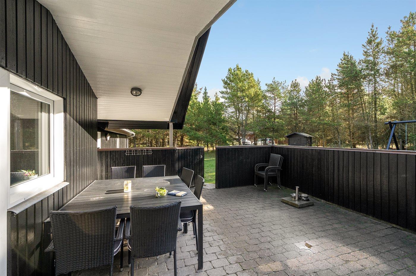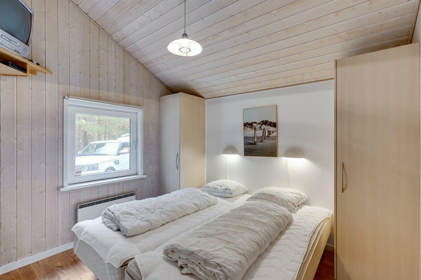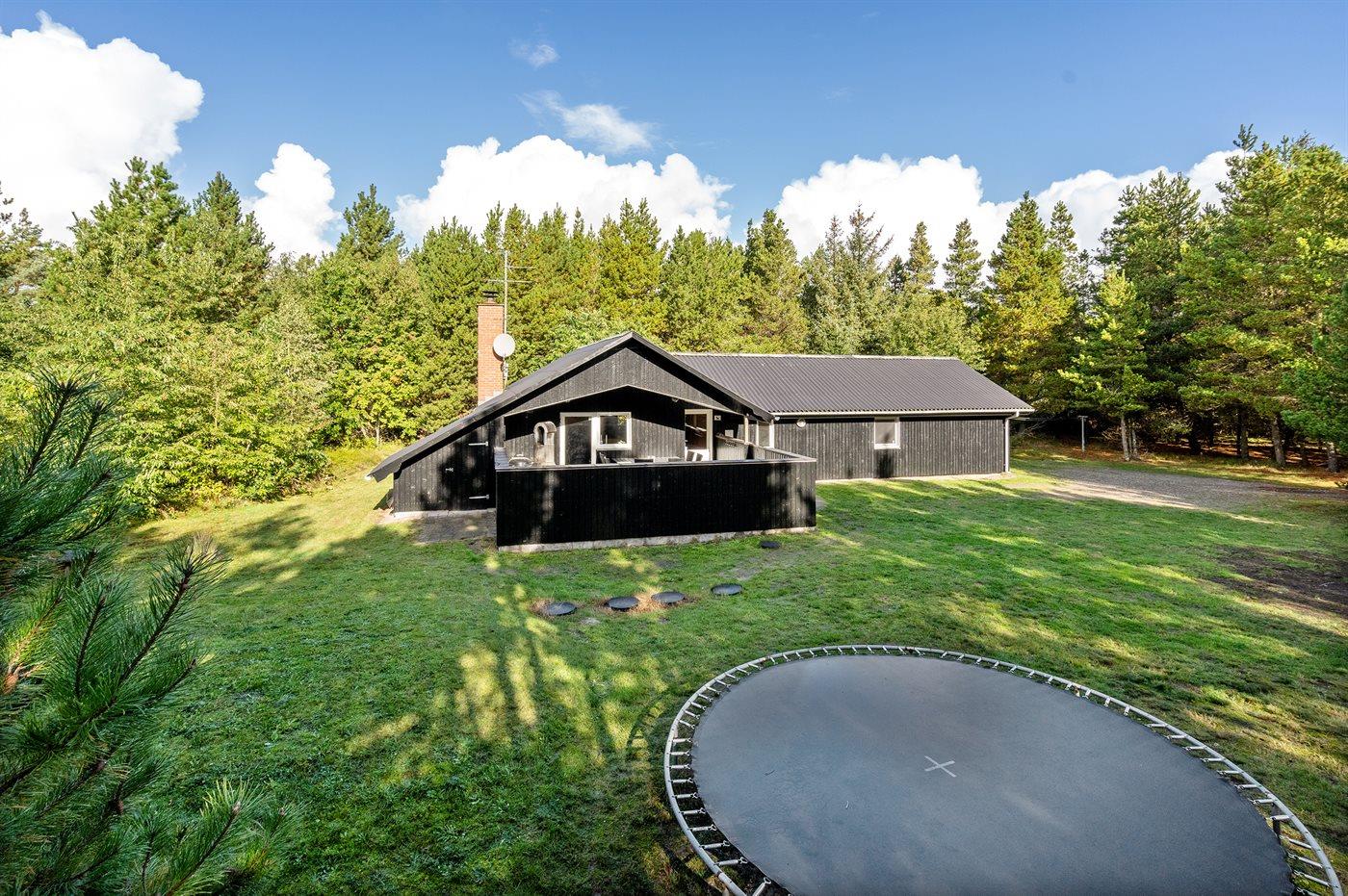 Dieses prachtvolle Ferienhaus aus Holz, 1999 gebaut, liegt auf einem großen, ungestörten Naturgrundstück. Zum Haus gehört eine schöne, abgeschirmte und teils überdachte Terrasse mit Gartenmöbeln. 2 schöne, große Badezimmer mit Dusche und Fußbodenheizung. Eins ist weiter mit 2-Pers. Whirlpool und direktem Zutritt zur Sauna ausgestattet, und in dem 2. Badezimmer gibt stehen Waschmaschine und Wäschetrockner zur Verfügung. Helle Küche mit u. a. Tiefkühlgerät, Geschirrspüler und Mikrowelle. Das gemütliche Wohnzimmer ist mit Qualitätsmöbeln sowie Kaminofen, TV mit Satellitenanschluss, DVD-Spieler und Stereoanlage mit CD-Spieler eingerichtet. Die Schlafplätze verteilen sich auf 4 Schlafzimmer; 2 mit Doppelbett, TV und DVD-Spieler, sowie 2 mit je 2 Einzelbetten. Seit 2008 gibt es einen neuen Multimediaraum mit kostenloser, kabelloser Internetverbindung (Computer ist mitzubringen) Flatscreen-TV mit Satellitenanschluss und Nintendo Wii sowie DVD-Spieler. Safety-Box vorhanden. Für die kleinen Feriengäste gibt es Kinderhochstuhl, Sandkasten, Schaukel und Spielhaus. Siehe auch Haus 29-2113.