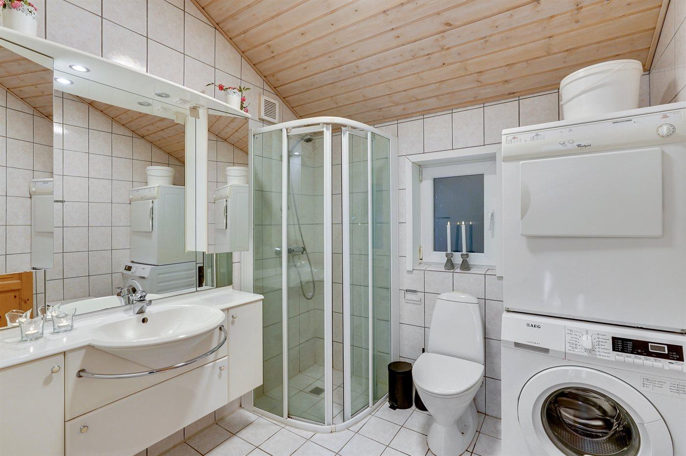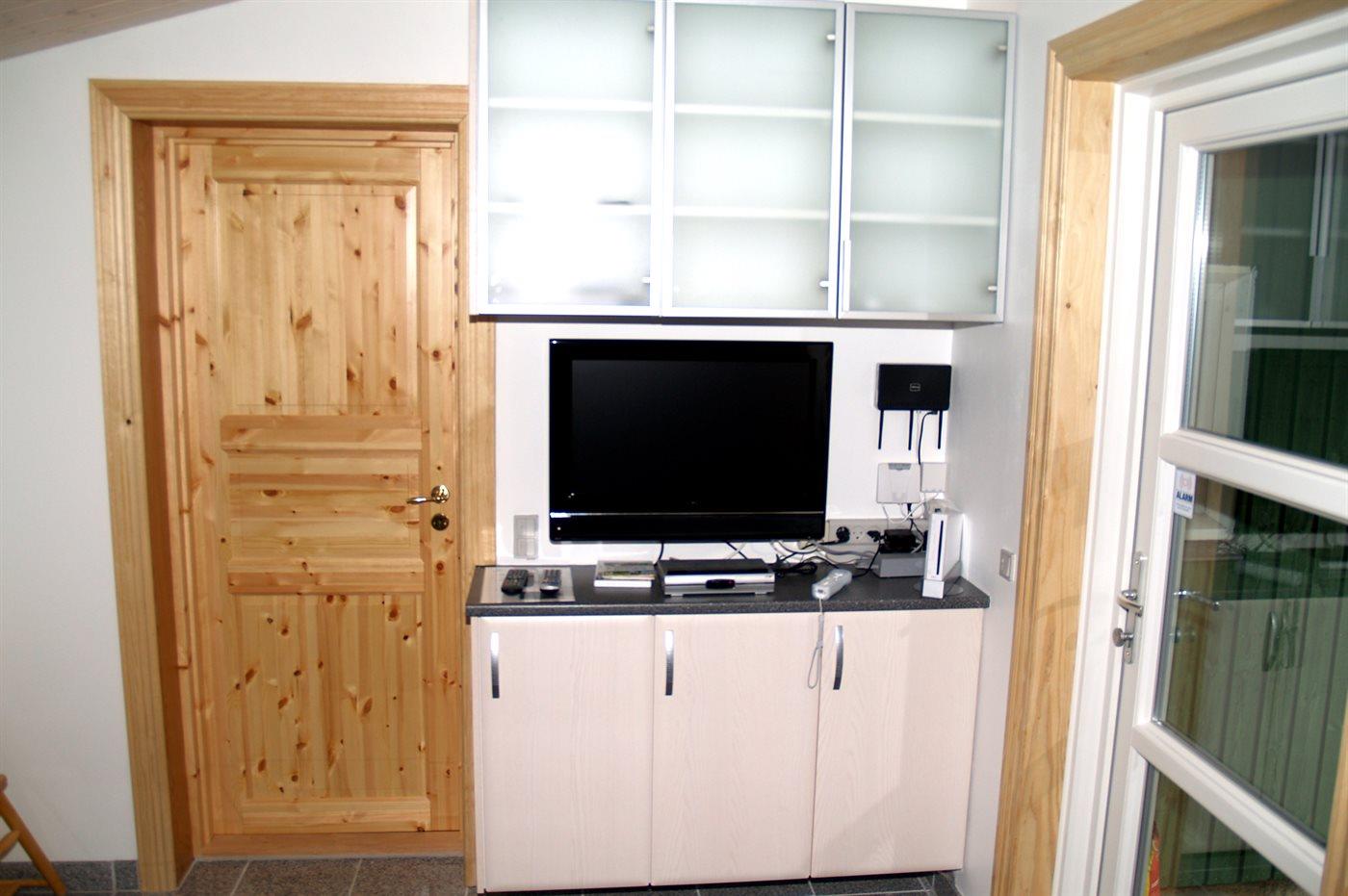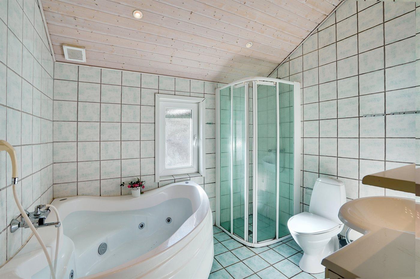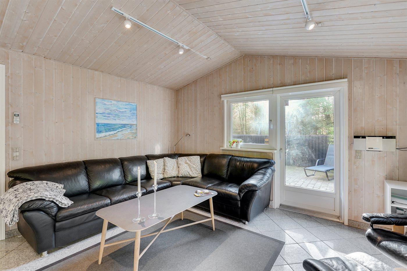 Dieses prachtvolle Ferienhaus aus Holz, 1999 gebaut, liegt auf einem großen, ungestörten Naturgrundstück. Zum Haus gehört eine schöne, abgeschirmte und teils überdachte Terrasse mit Gartenmöbeln. 2 schöne, große Badezimmer mit Dusche und Fußbodenheizung. Eins ist weiter mit 2-Pers. Whirlpool und direktem Zutritt zur Sauna ausgestattet, und in dem 2. Badezimmer gibt stehen Waschmaschine und Wäschetrockner zur Verfügung. Helle Küche mit u. a. Tiefkühlgerät, Geschirrspüler und Mikrowelle. Das gemütliche Wohnzimmer ist mit Qualitätsmöbeln sowie Kaminofen, TV mit Satellitenanschluss, DVD-Spieler und Stereoanlage mit CD-Spieler eingerichtet. Die Schlafplätze verteilen sich auf 4 Schlafzimmer; 2 mit Doppelbett, TV und DVD-Spieler, sowie 2 mit je 2 Einzelbetten. Seit 2008 gibt es einen neuen Multimediaraum mit kostenloser, kabelloser Internetverbindung (Computer ist mitzubringen) Flatscreen-TV mit Satellitenanschluss und Nintendo Wii sowie DVD-Spieler. Safety-Box vorhanden. Für die kleinen Feriengäste gibt es Kinderhochstuhl, Sandkasten, Schaukel und Spielhaus. Siehe auch Haus 29-2113.