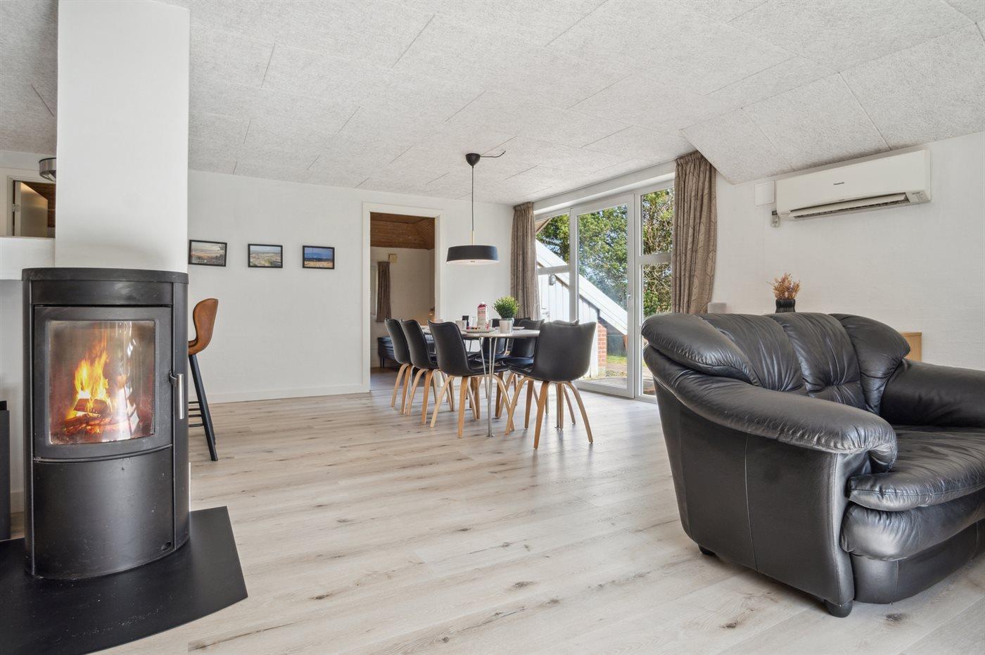 Geräumiges Ferienhaus auf Rømø mit Terrasse, Kaminofen und Blick zum Wattenmeer für erholsame Urlaubstage.