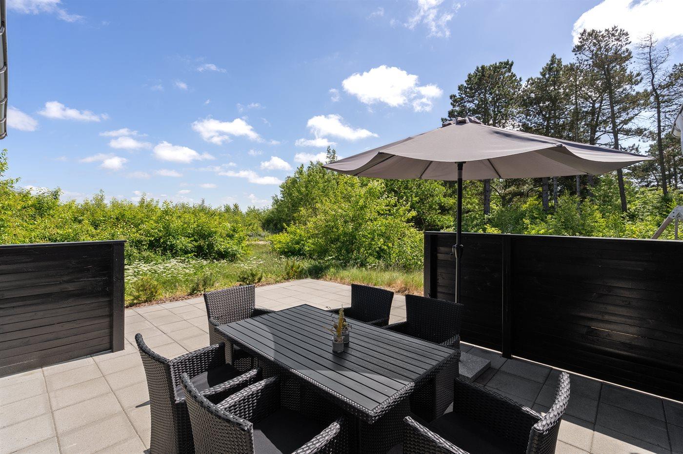 Die Ferienunterkunft liegt auf einem 2800 m² großen Naturgrundstück. Die Entfernung zum Meer beträgt 1100 m.Die Entfernung zum Wattenmeer beträgt 1300 m. Die nächste Einkaufsmöglichkeit liegt 1200 m entfernt. In einem Abstand von 50 m gibt es einen Golfplatz. Es steht ein 60 m² Terrassenareal zur Verfügung. Schaukel. Sandkasten. Es steht ein Grill zur Verfügung. Es ist ein Ladestecker für Elektroautos installiert. Parkplatz auf dem Grundstück.