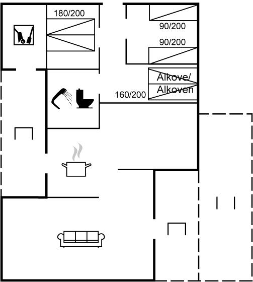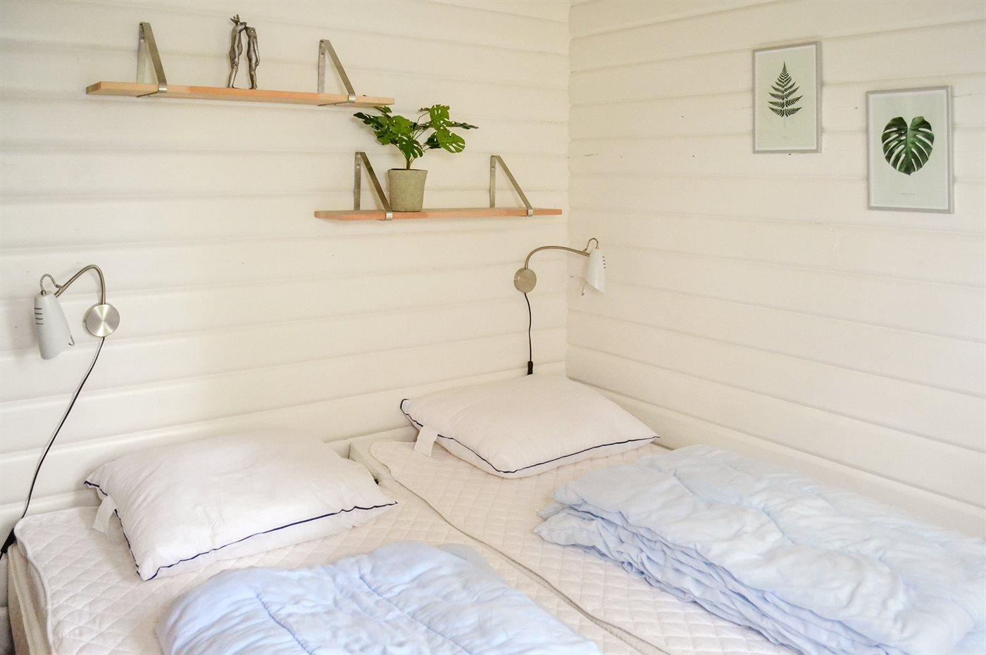 Die Schlafplätze verteilen sich auf 2 Schlafräume. 2 Schlafplätze in einem Doppelbett. 2 Schlafplätze in Einzelbetten.2 Schlafplätze im Alkoven.