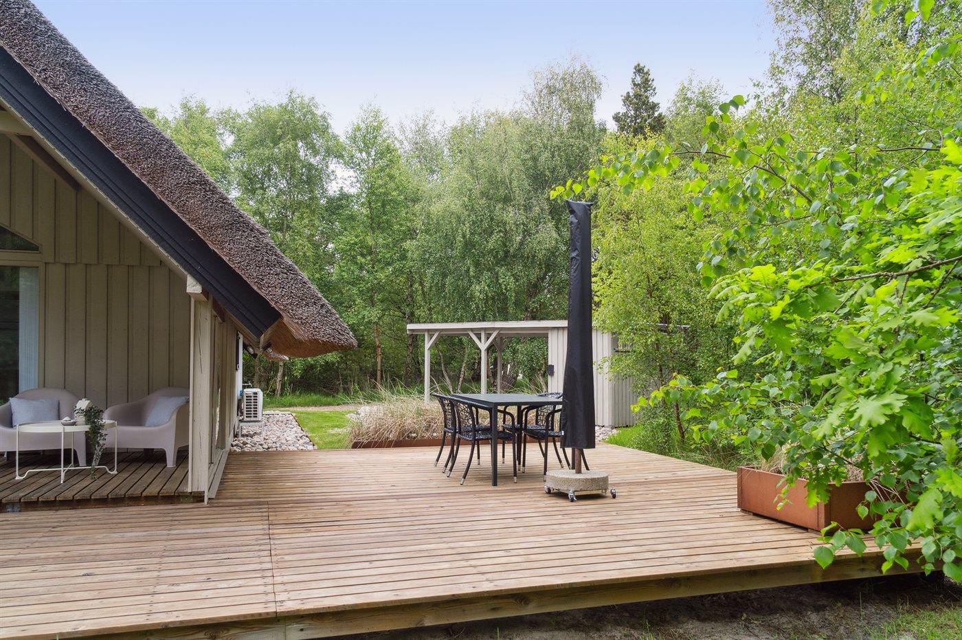 Die Ferienunterkunft liegt auf einem 2900 m² großen Naturgrundstück. Die Entfernung zum Meer beträgt 1200 m. Die nächste Einkaufsmöglichkeit liegt 2500 m entfernt. In einem Abstand von 1500 m gibt es einen Golfplatz. Es steht ein 36 m² Terrassenareal zur Verfügung. Außerdem gibt es 12 m² überdachte Terrasse. Spielturm mit Schaukel. Es steht ein Grill zur Verfügung. Parkplatz auf dem Grundstück.