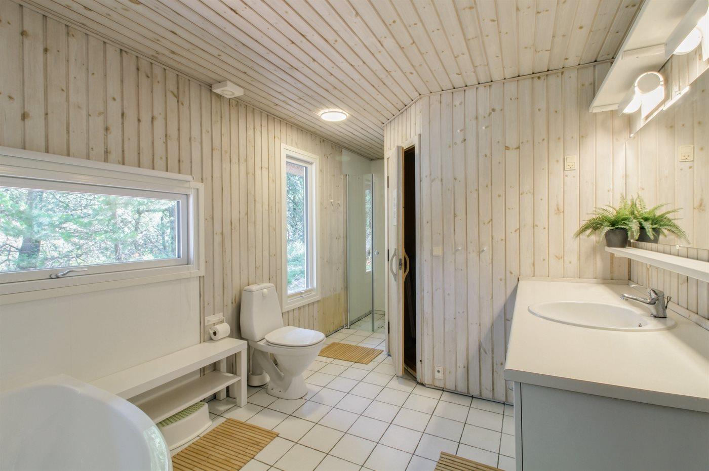 Es gibt 1 Badezimmer mit Duschnische und 2 Toiletten, davon 1 Gästetoilette. Fußbodenheizung in 1 Badezimmer. Es steht eine Sauna zur Verfügung in der Sie sich so richtig entspannen können.