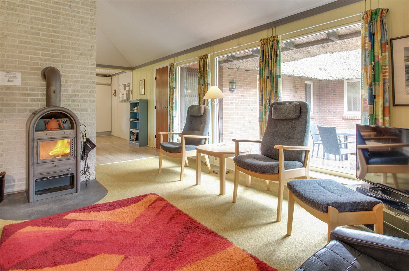 Strohgedecktes Ferienhaus auf einem ungestörten, kinderfreundlichen Naturgrundstück in idyllischer Umgebung gelegen. Zum Haus gehört eine schöne, teilweise überdachte Terrasse mit Gartenmöbeln. Innen sind die Böden zum Teil mit Teppich ausgelegt.