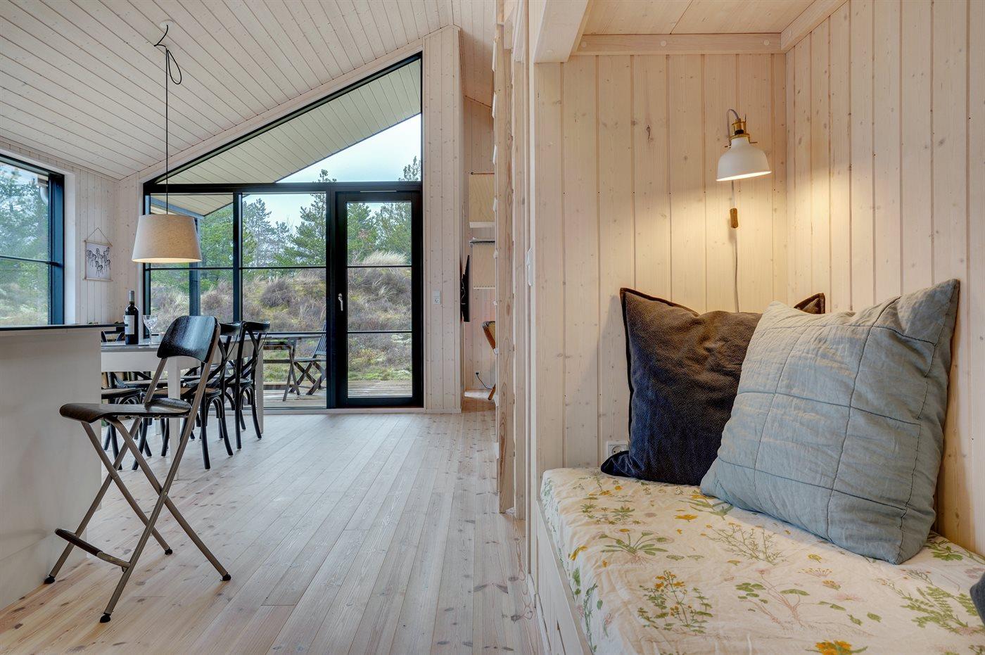 Einkaufsmöglichkeiten und ein Bäcker liegen 1900 m entfernt Richtung Süden und sind schnell mit dem Fahrrad zu erreichen. In 2000 m Richtung Norden befindet sich ein großer Naturspielplatz. Rømøs bekannter, kilometerbreite Nordsee-Badestrand liegt 4000 m entfernt. Das Ferienhaus wird mit einer energiesparenden Wärmepumpe beheizt. An heißen Tagen kann die Pumpe die Temperatur im Haus auch herunterkühlen. Das Haus hat insgesamt 3 Schlafzimmer. Die Schlafplätze verteilen sich auf 2 Zimmer mit Doppelbett (4 Schlafplätze) und ein Zimmer mit einem kleinen Doppelbett und einem einzelnen Etagenbett darüber (3 Schlafplätze). Dazu kommt ein offenes Obergeschoss mit 2–3 möglichen Schlafplätzen. Die Küche ist mit einem großen Kühl-/Gefrierschrank, einem Induktionsherd, einem Backofen, einer Mikrowelle, einem Toaster, einer Kaffeemaschine und Spülmaschine ausgestattet. Im Badezimmer mit Fußbodenheizung steht neben der großen Duschnische eine Waschmaschine zur Verfügung. Auch ein Wäscheständer ist vorhanden. Das 50 Zoll große Smart-TV verfügt über eine Internetverbindung und empfängt mindestens 4 dänische, 4 deutsche, 3 schwedische und 3 norwegische Sender. Außerdem steht selbstverständlich WLAN mit schneller Breitbandverbindung zur Verfügung. Willkommen im J. Tagholmsvej 14!