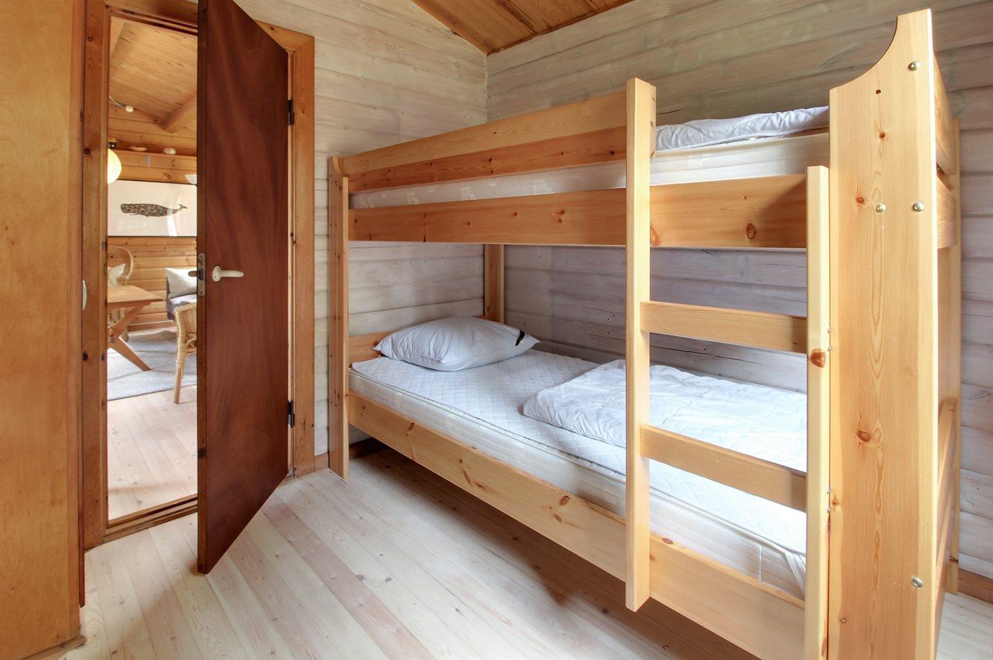 Die Schlafplätze verteilen sich auf 2 Schlafräume. 2 Schlafplätze in einem Doppelbett. 2 Schlafplätze in einem Etagenbett.