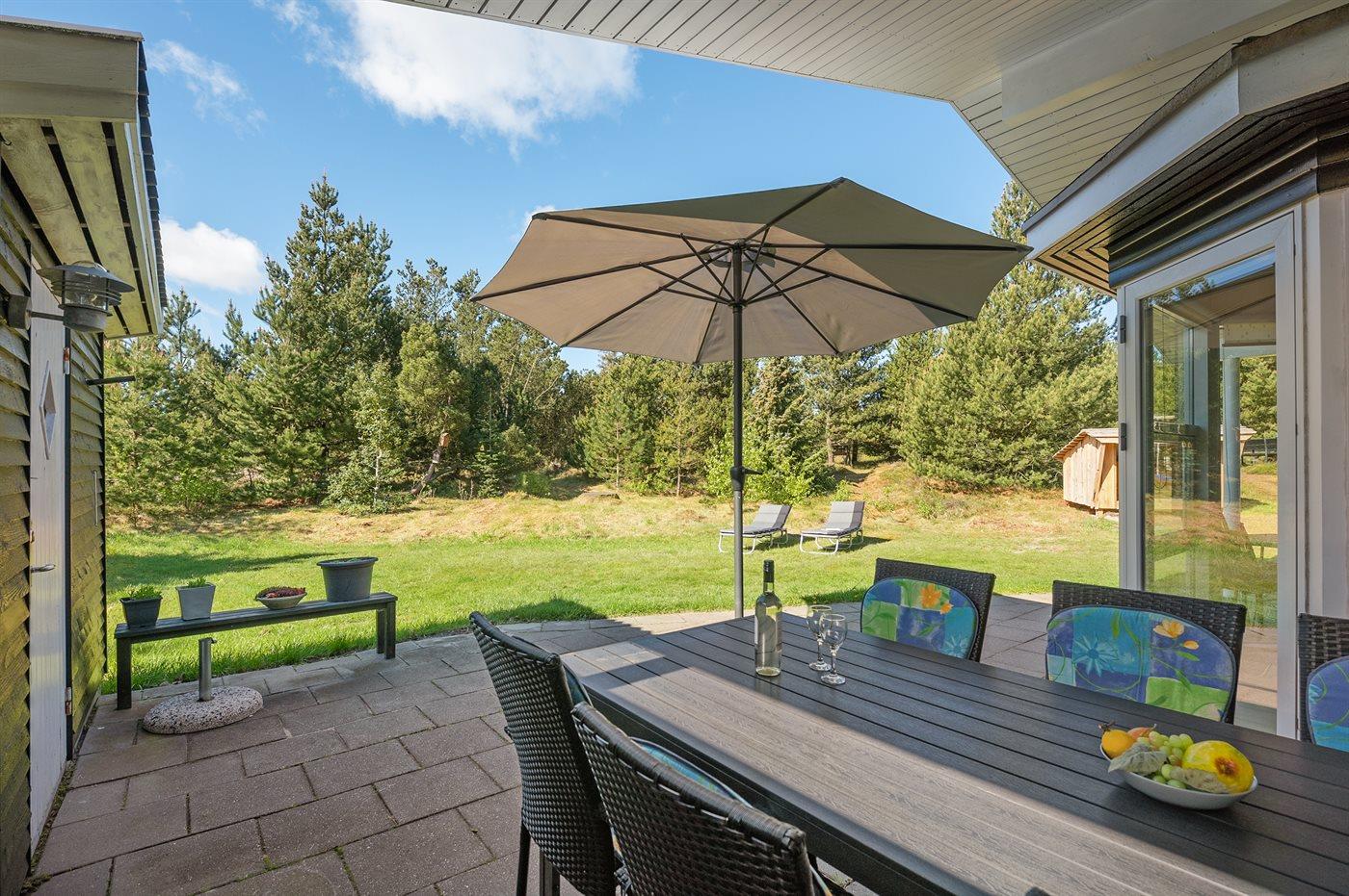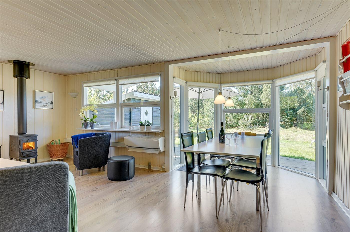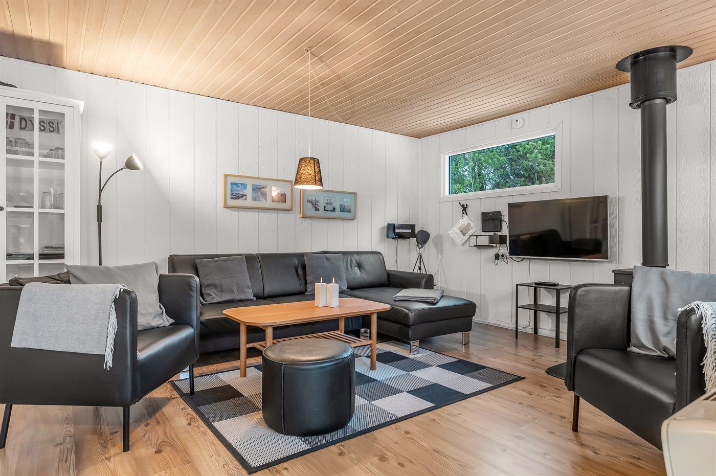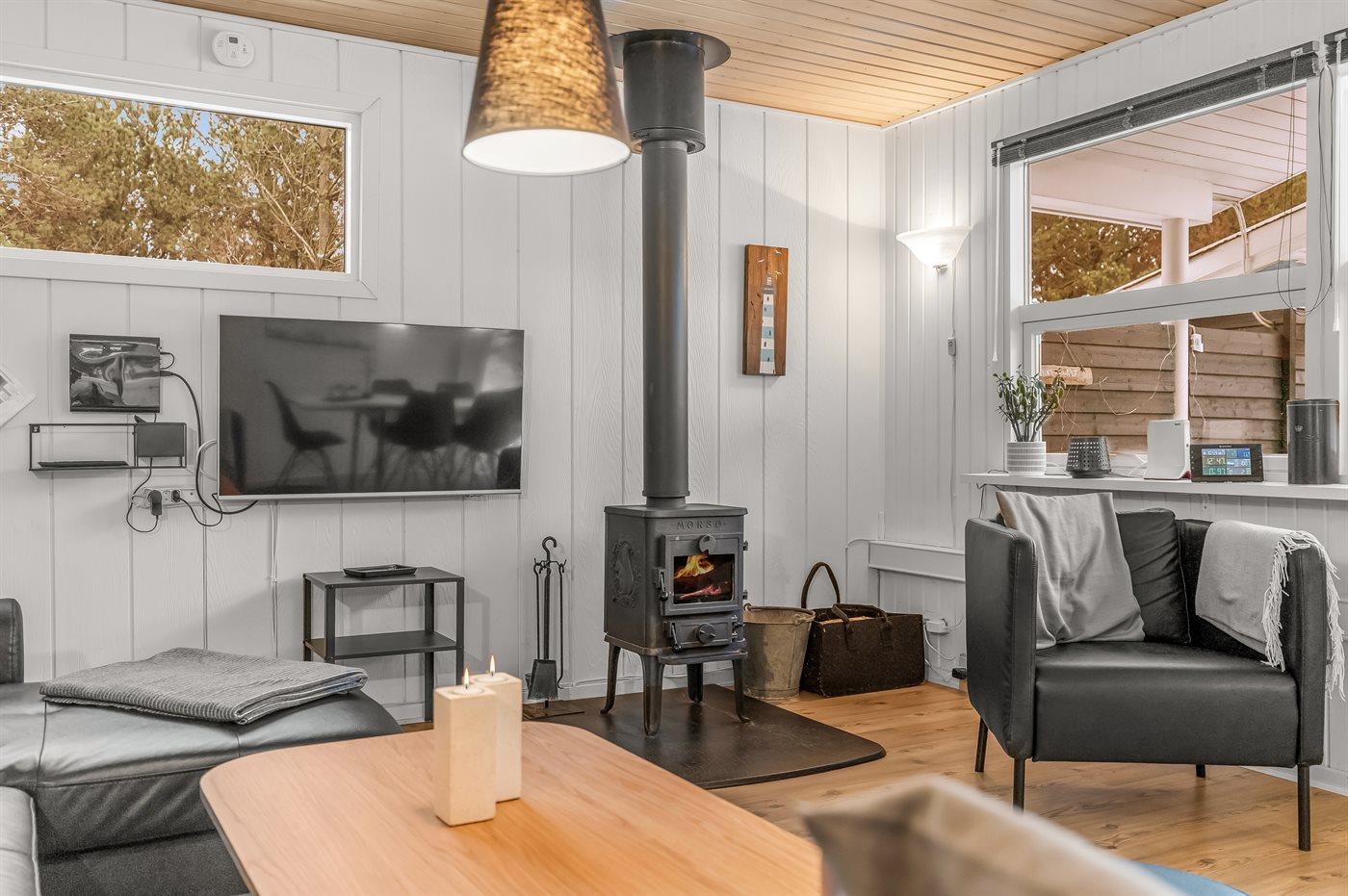 Dieses schöne und gepflegte Ferienhaus liegt auf einem schönen Naturgrundstück in idyllischer und ungestörter Natur - nicht weit vom schönen Sønderstrand entfernt. Zum Haus gehören schöne, sowohl offene als auch überdachte Terrassen mit Gartenmöbeln. Das Haus tritt hell und freundlich hervor.