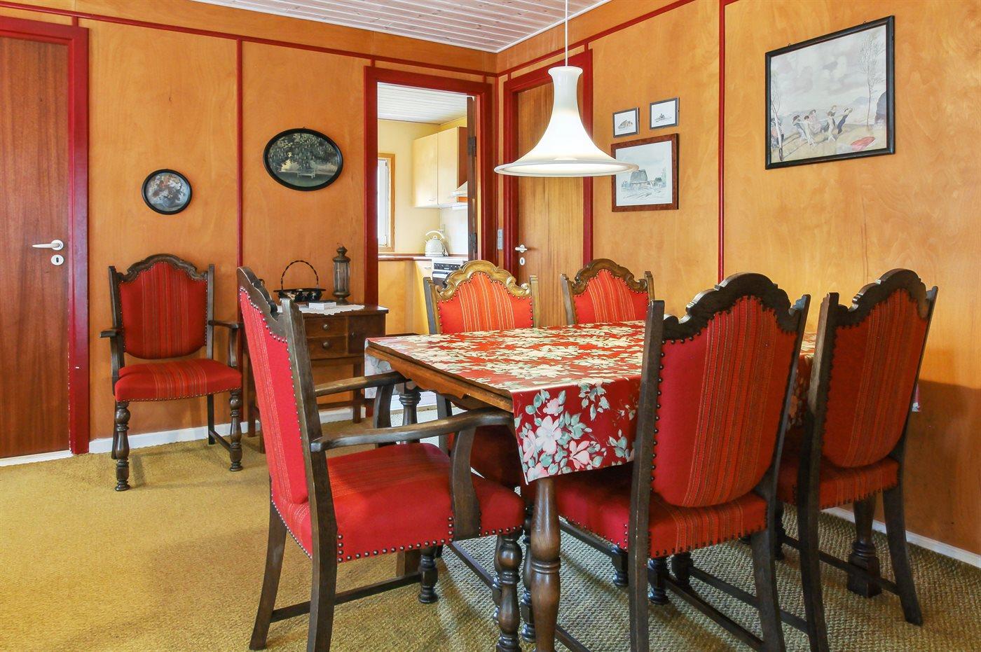 Nettes Ferienhaus aus Holz, 1969 gebaut und 2000 renoviert mit u. a. neuen Thermofenstern, auf einem ungestörten Naturgrundstück in der schönen Natur bei Sønderstrand gelegen. Zum Haus gehört sowohl offene als auch überdachte Terrasse mit Gartenmöbeln sowie ein schöner Wintergarten. Neues Badezimmer (2006) mit Dusche. Die separate Küche ist u. a. mit Tiefkühlgerät ausgestattet. Das Wohnzimmer, von dem Sie die Aussicht auf die Natur mit ihrem reichen Tierleben genießen können, enthält Stereoanlage mit CD-Spieler und TV mit digitalem Satellitenanschluss. 3 Schlafzimmer, alle mit je 2 Einzelbetten. Das Haus liegt im Gehabstand zum Strand und in einem Gebiet das zu Spaziergängen einlädt.