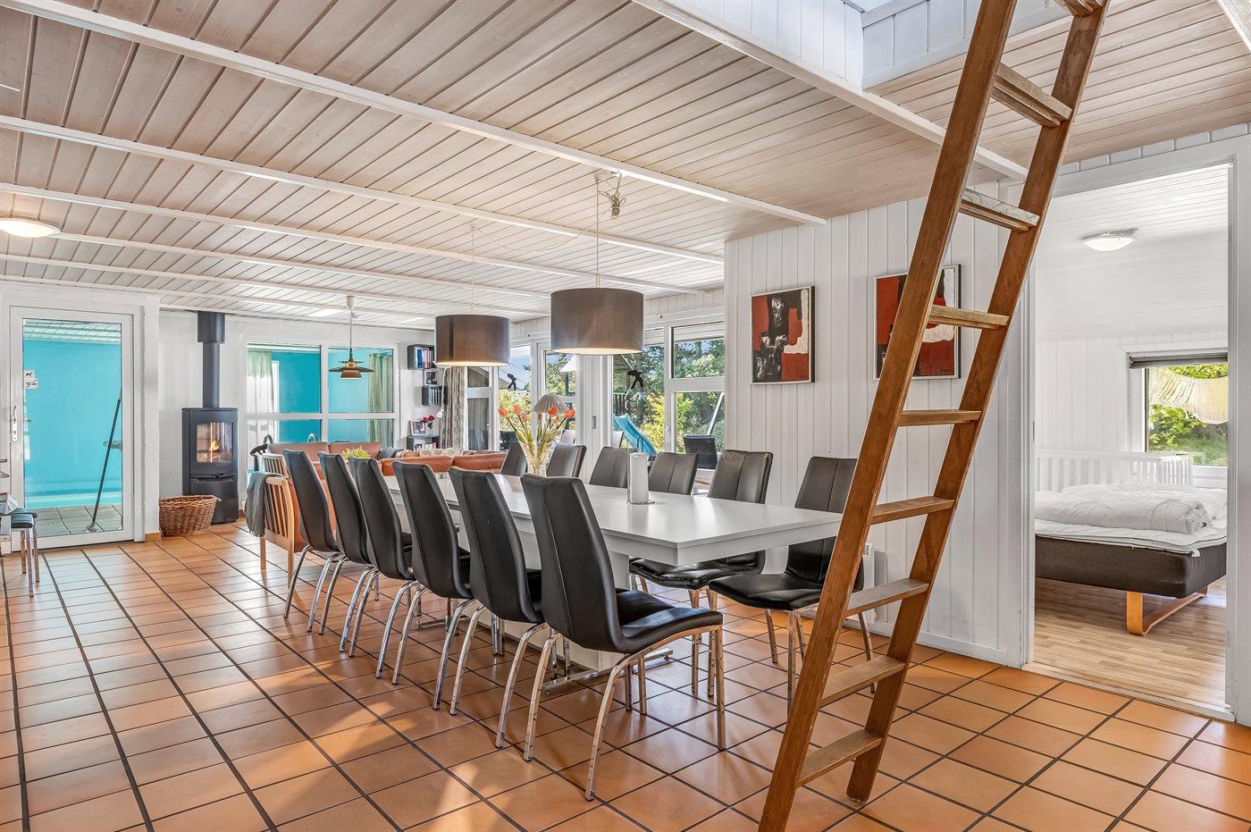 Im naturschönen Kromose, nah beim Wattenmeer, liegt dieses schöne Holzhaus mit Swimmingpool. Der Pool wird durch eine energiegerechte Wärmerückgewinnungsanlage beheizt, die die Heizkosten reduziert. Das Haus bietet über den Swimmingpool hinaus auch einen 5-Pers.-Whirlpool mit Standwasser an (dieser ist bei Anreise gefüllt) - hier können sich Groß und Klein im Nassen so richtig vergnügen. Von der Stube aus lässt sich der Poolraum einsehen. Die gemütliche Stube mit Kaminofen liegt in offener Verbindung mit der gut ausgestatteten Küche. 5 Schlafräume mit Doppelbett und ein offenes Obergeschoss mit zwei Schlafplätzen. Zwei schöne, komplette Badezimmer mit Fußbodenheizung sowie Sauna. Es ist eine kostenlose, kabellose Internetverbindung installiert (Computer ist mitzubringen) und für die kleineren Gäste stehen Kinderbett und -stuhl sowie Wickeltisch zur Verfügung. Sandkasten, Schaukel, Beachvolleyballplatz und Basketballkorb auf dem Grundstück. Die schöne, teils überdachte Südterrasse mit Gartenmöbeln und Grill lädt den ganzen Tag in die Sonne ein.