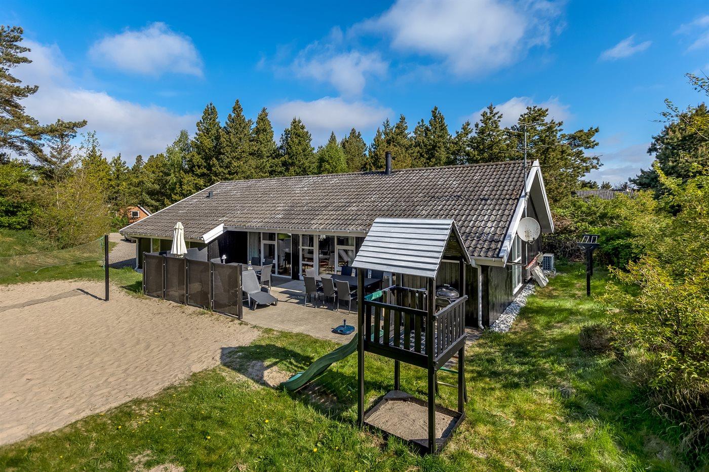 Gemütliches Holzhaus nahe Wattenmeer mit beheiztem Pool, Whirlpool, Sauna und großem Garten für erholsamen Urlaub in Dänemark.