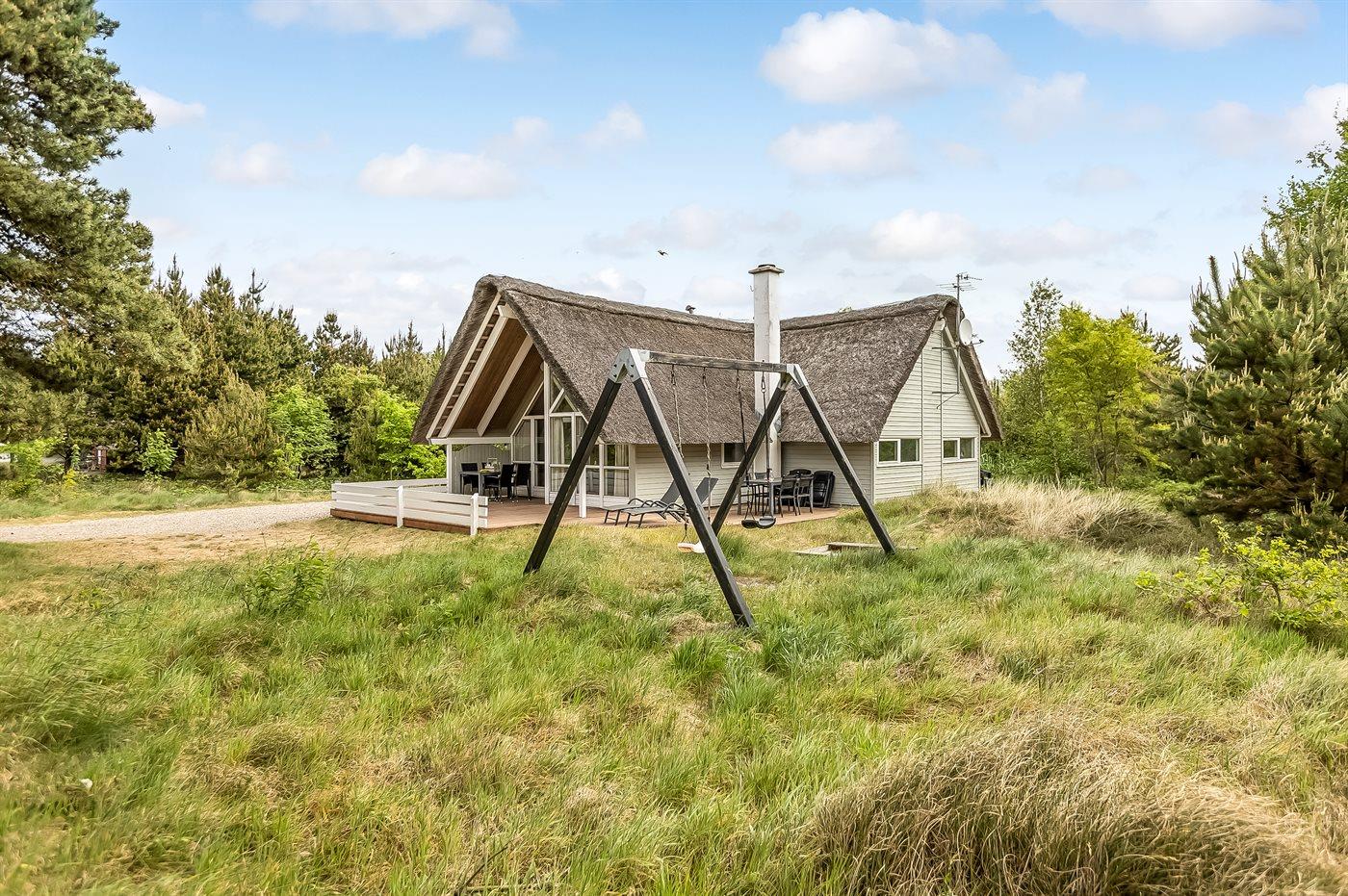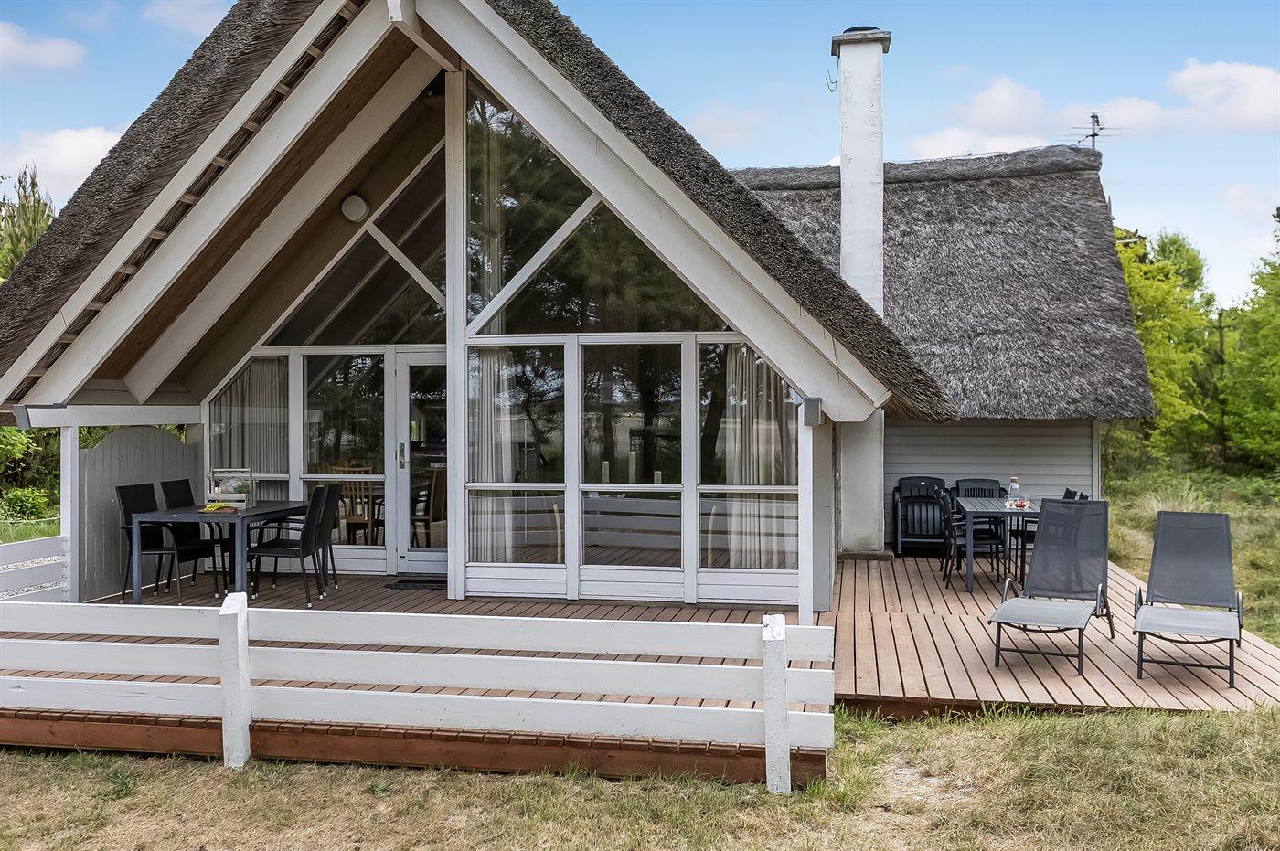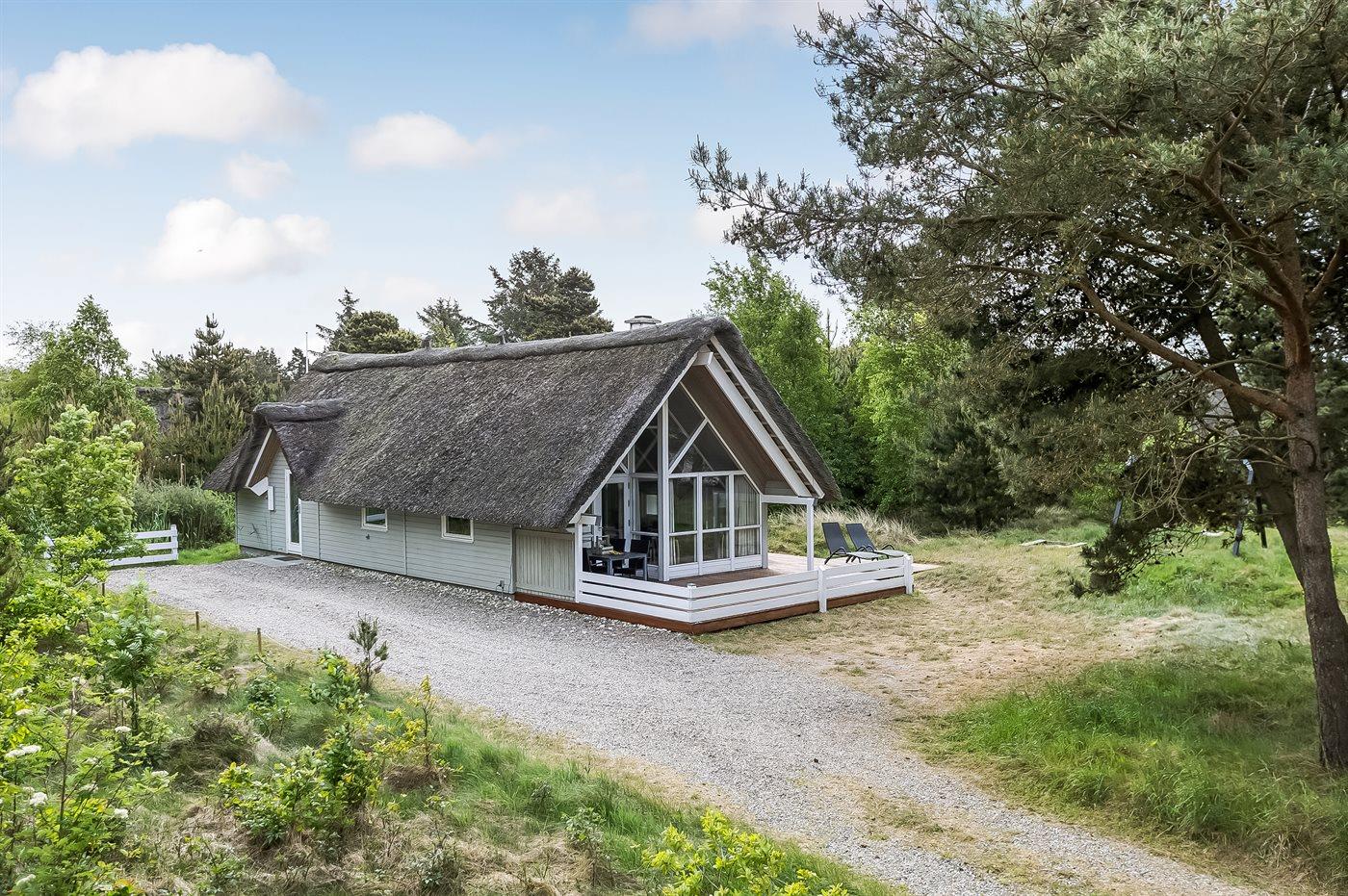 Gemütliches, reetgedecktes Ferienhaus nahe Sønderstrand mit Sauna, Whirlpool und großer Terrasse auf Naturgrundstück.