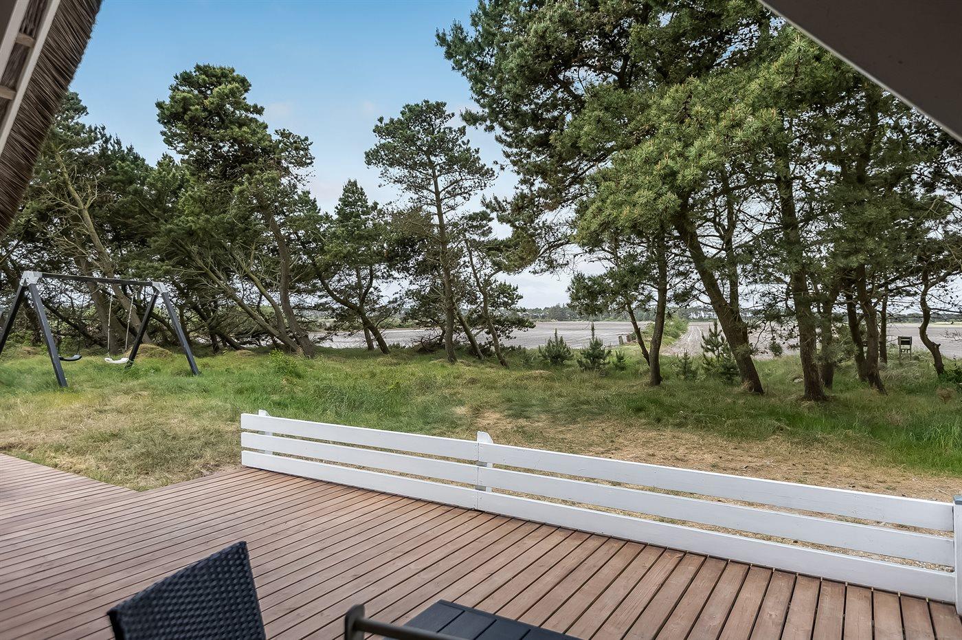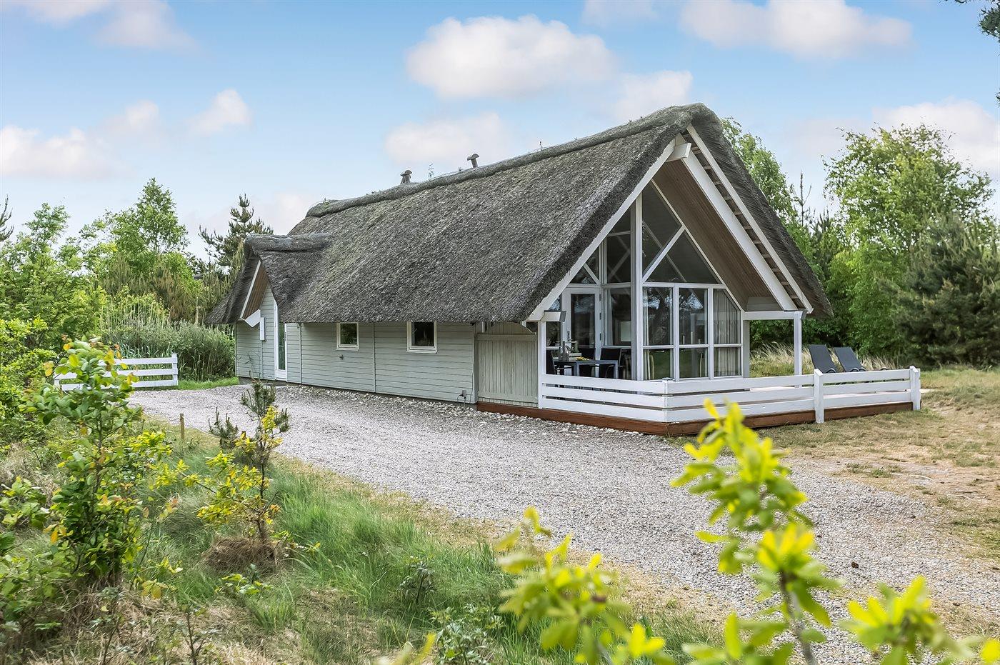 Dieses schöne, reetgedeckte Ferienhaus liegt auf einem teilweise geschlossenen Naturgrundstück ganz in der Nähe von Sønderstrand der für seinen breiten, weißen Sandstrand, wo alle Strandaktivitäten möglich sind, bekannt ist. Das Haus ist sehr gemütlich eingerichtet mit u. a. Holzfußboden und Kaminofen im Wohnraum. Von hier haben Sie auch direkten Zugang zu einer großen, teilweise überdachten Terrasse. Ferner kostenlose, kabellose ADSL-Internetverbindung vorh. (Computer mitzubringen). Die 4 Schlafräume sind alle mit Doppelbetten eingerichtet. Auch ein großes bad mit Whirlpool und Sauna sowie eine Gästetoilette sind vorhanden. Sandkiste und Schaukel auf dem Grundstück.