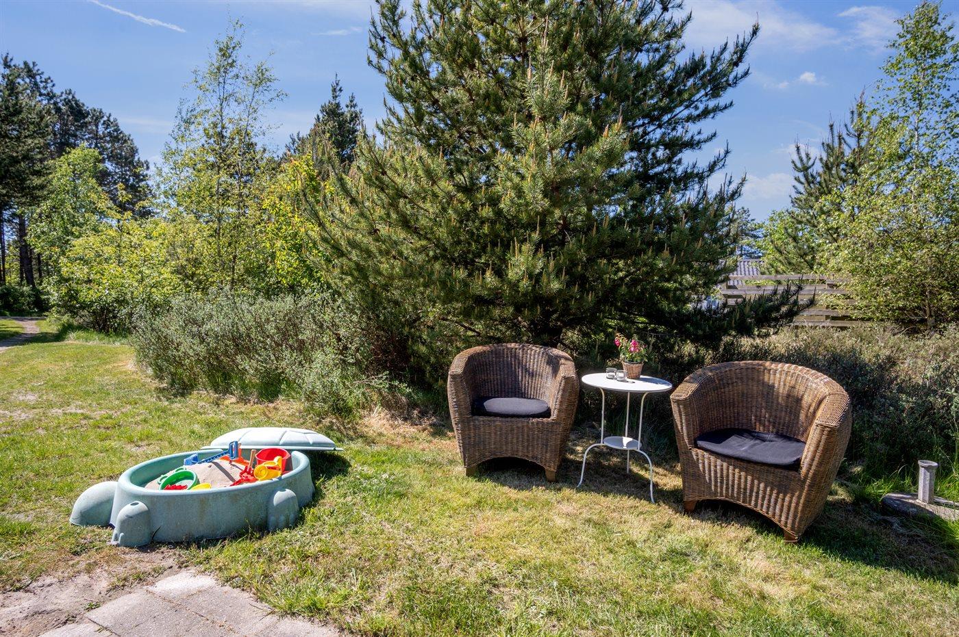 Draußen kann man die Natur von der Terrasse aus genießen, wo Grill, Gartenmöbel und Sandkasten zur Verfügung stehen.