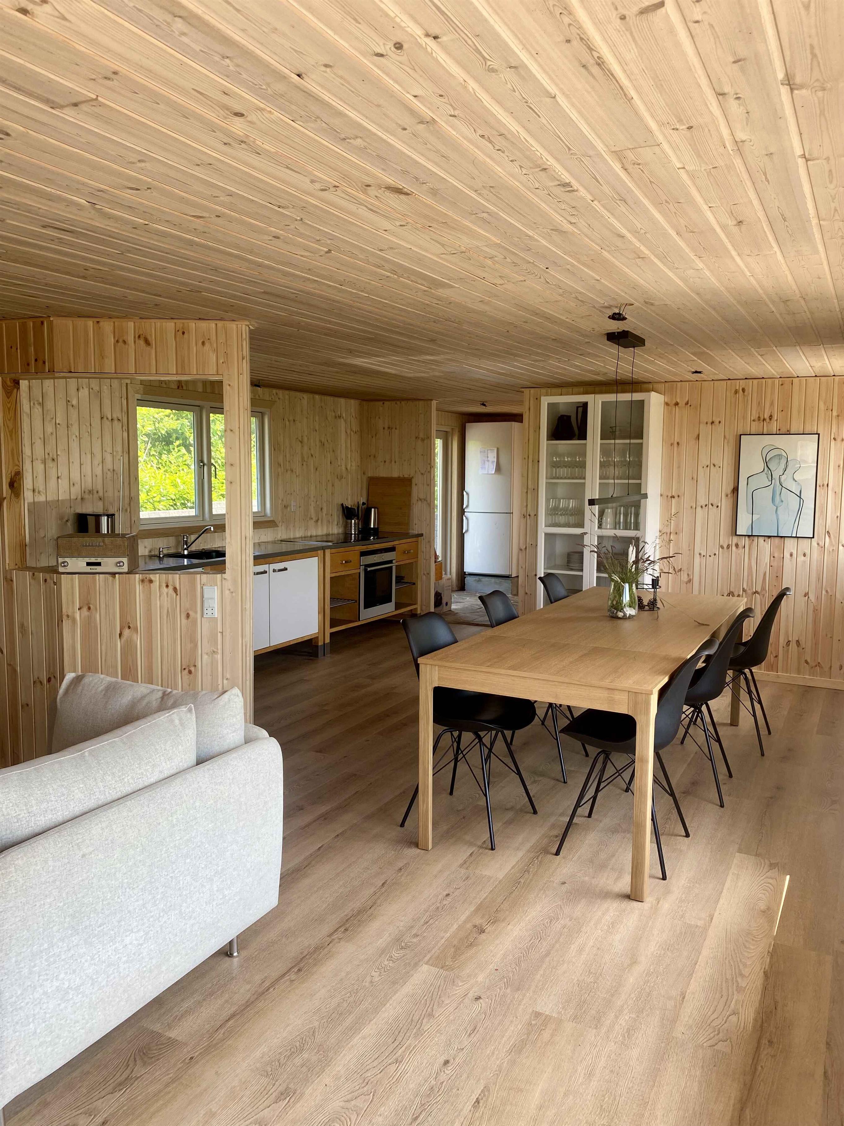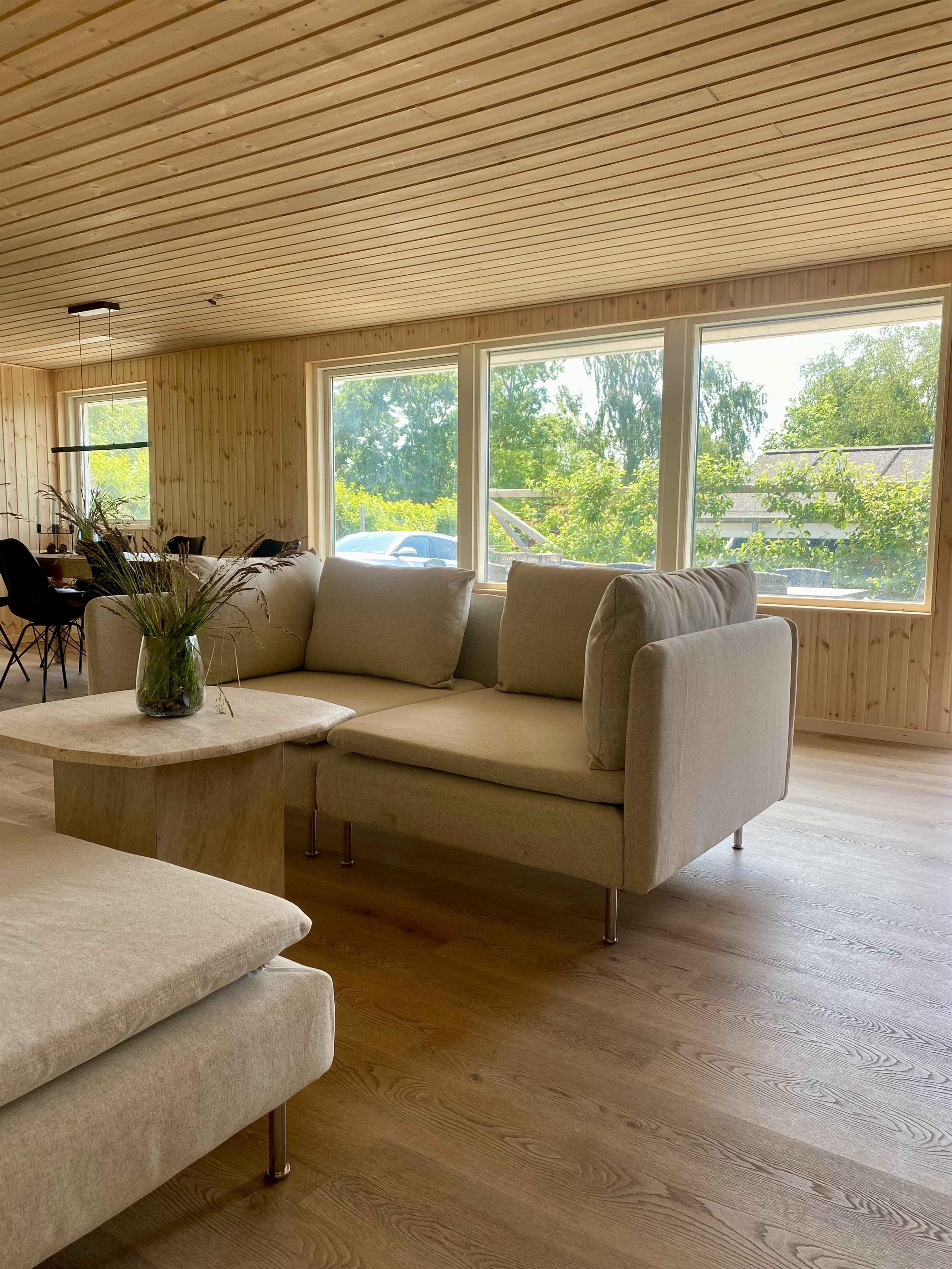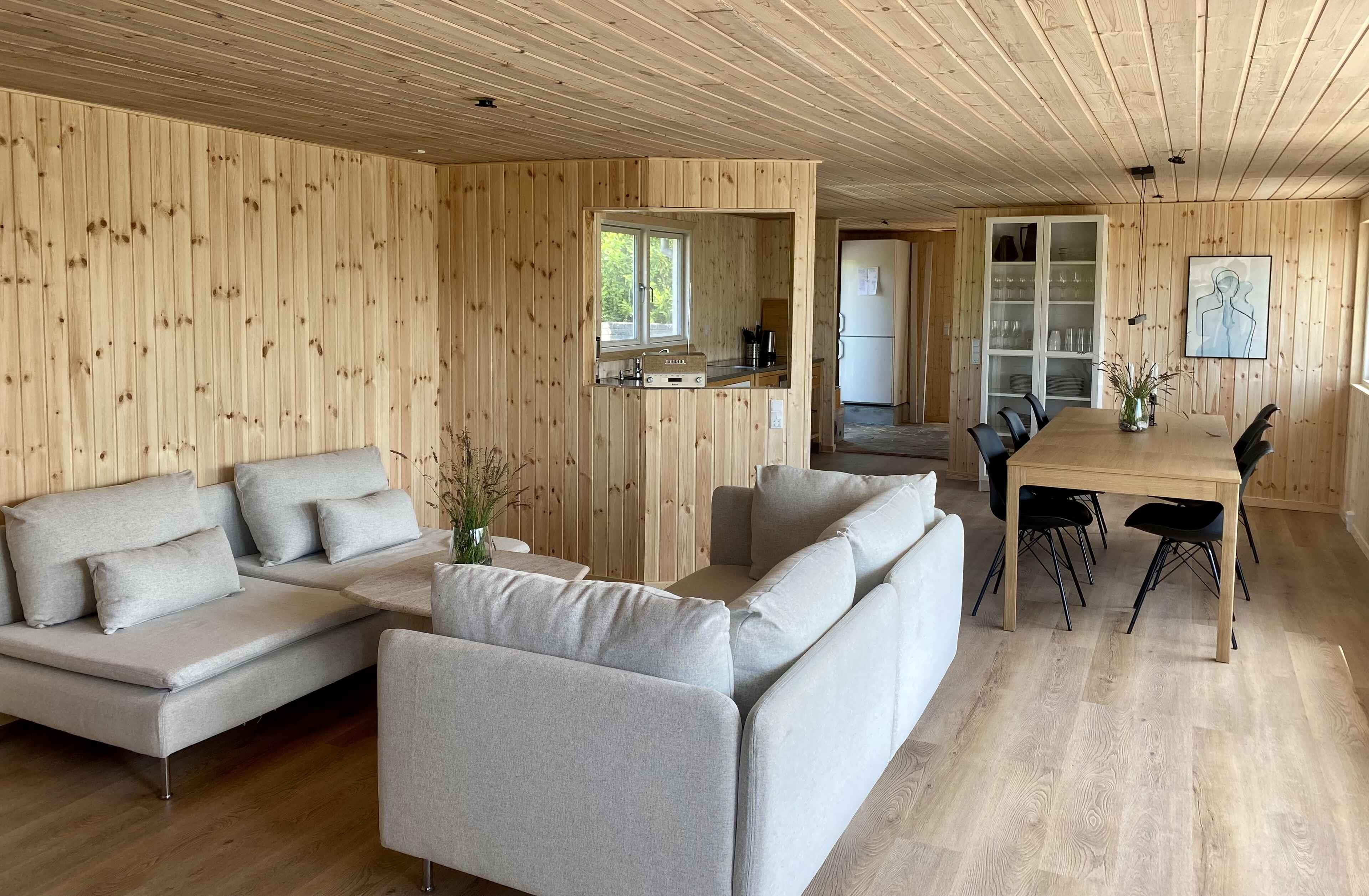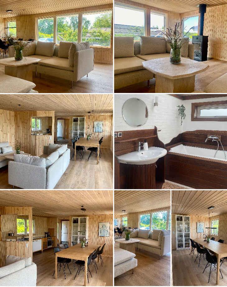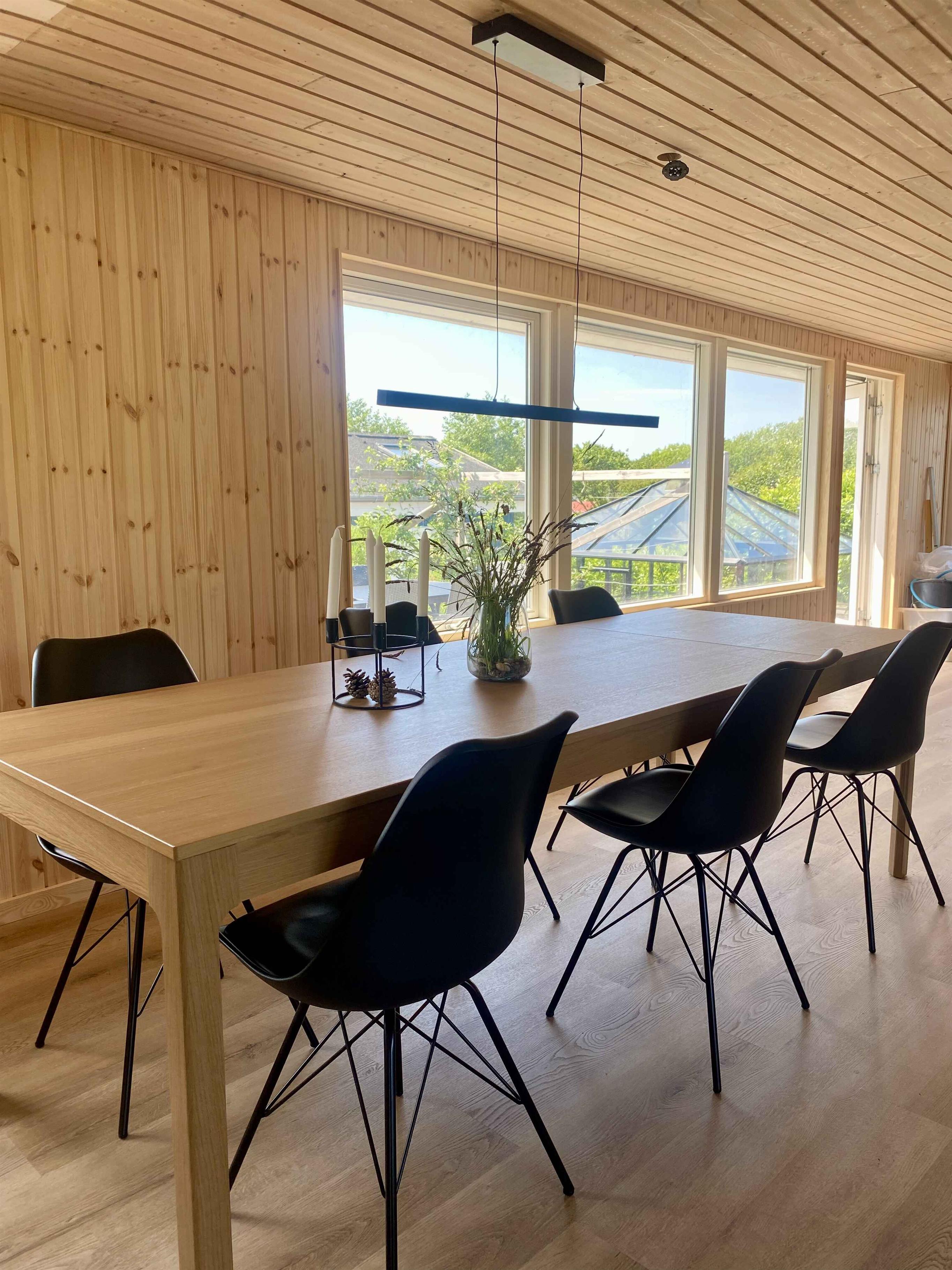 Dieses Ferienhaus mit 40 m² Aktivitätsraum eignet sich ideal für zwei Familien oder Freunde, die gemeinsam Urlaub machen möchten und dennoch Privatsphäre schätzen. Es liegt bei Følle Strand und besteht aus zwei renovierten Häusern auf einem Grundstück. Aus Rücksicht und Respekt gegenüber unseren lieben Nachbarn dürfen keine lauten Musikpartys veranstaltet werden, und an Jugendgruppen wird nicht vermietet. Insgesamt gibt es 4 Schlafzimmer und bis zu 10 Schlafplätze sowie ein Reisebett für kleine Kinder. Die Einrichtung bietet Flexibilität für Familien und Freundesgruppen, die Platz zum Zusammensein wünschen – und die Möglichkeit, sich zurückzuziehen. Haus 1 verfügt über 4 Schlafplätze, verteilt auf zwei Zimmer. Das eine Zimmer hat ein Bett von 140 x 200 cm, das andere zwei Einzelbetten. Das Haus hat auch ein Badezimmer mit Badewanne. Haus 2 / das Nebengebäude verfügt über 6 Schlafplätze. Hier gibt es zwei Zimmer mit Betten (140 x 200 cm) sowie ein Wohnzimmer mit einem Doppelschlafsofa. Das Nebengebäude verfügt auch über ein eigenes Badezimmer, was für zusätzlichen Komfort während des Aufenthalts sorgt. Darüber hinaus gibt es einen 40 m² großen Aktivitätsraum mit unter anderem Airhockey und Dart. Hier können sich Kinder und Erwachsene unabhängig vom Wetter zu Spielen und gemütlichen Stunden treffen. Im Außenbereich erwarten Sie große, sonnige Terrassen, auf denen Sie Ihre Mahlzeiten und Ihre Freizeit im Freien genießen können. Golf- und Padelplätze sind ebenfalls nicht weit entfernt, falls Sie Ihren Urlaub mit Aktivitäten verbinden möchten. Das Wasser ist ca. 300 Meter entfernt, und Følle Strand ist für seinen schönen Badestrand bekannt. Hier können Sie den Tag mit einem Ausflug zum Strand oder einem Spaziergang zur lokalen Eisdiele am Wasser beginnen. Die Gegend bietet viele Erlebnisse für die ganze Familie. In kurzer Fahrzeit erreichen Sie Djurs Sommerland (ca. 25 Min.), Ree Park Safari (ca. 20 Min.) und Aarhus (ca. 30 Min.). Darüber hinaus sind der Skandinavische Tierpark, das Kattegatcenter und der Randers Regenwald beliebte Ausflugsziele.