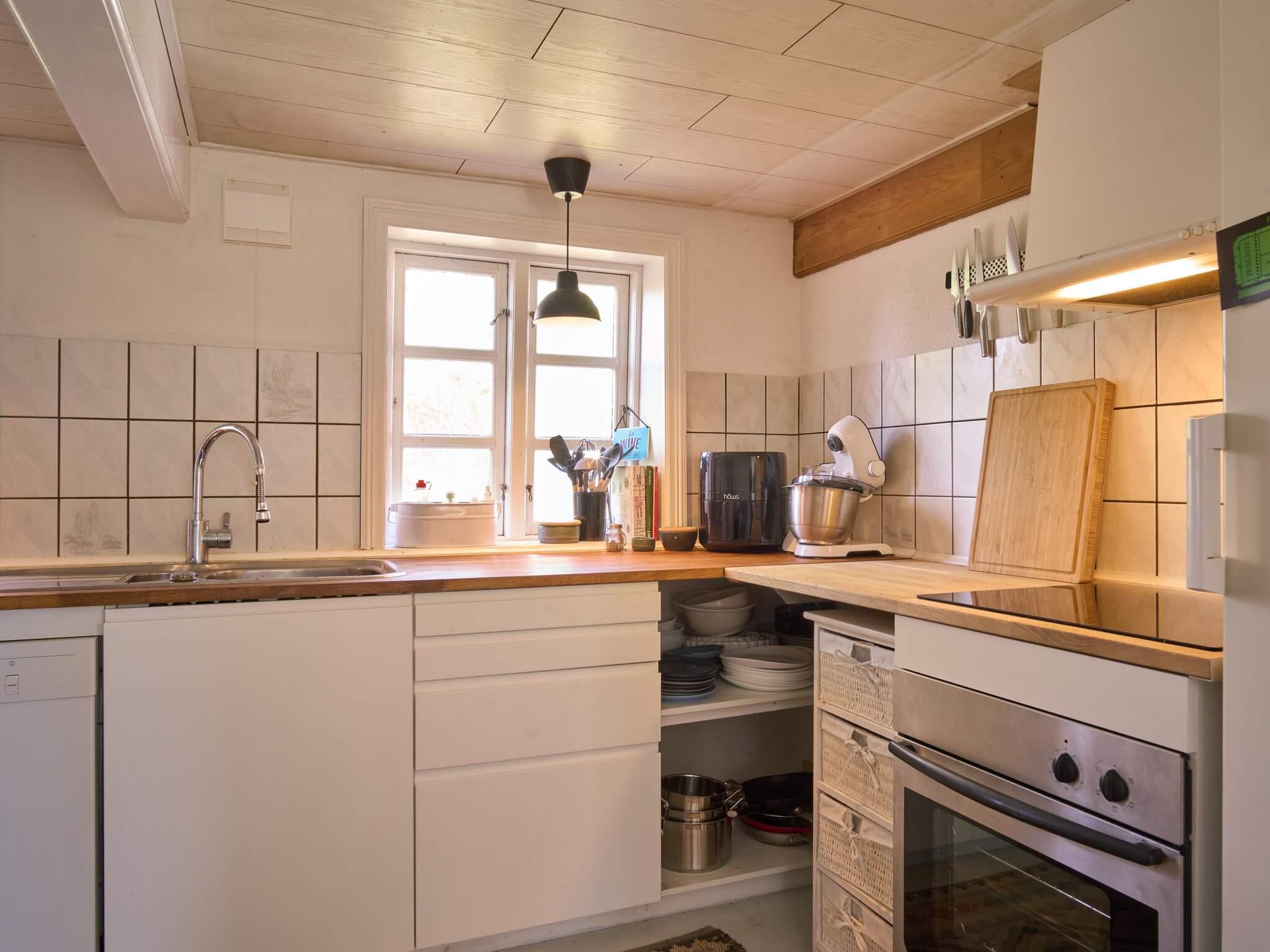 Gemütliches kleines Landanwesen in Vestermarie. Es bietet eine Eingangsdiele, eine große Küche mit Essbereich und Zugang zu einer Terrasse mit Blick auf den Garten, der zum Nachbargrundstück mit Tierhaltung führt. Das Wohnzimmer verfügt über einen Holzofen, eine gemütliche Sitzecke und ein Ausziehbett. Küche und Wohnzimmer sind nach Süden ausgerichtet. Im Norden befinden sich ein Badezimmer und ein Schlafzimmer mit einem Doppelbett. Die Unterkunft verfügt außerdem über ein Kinderzimmer. Kinderbett & Spielzeug. Der separate Anbau bietet 2 weitere Betten, einen Fernseher und verschiedene eigene Gegenstände. Küchenausstattung. Das Ferienhaus liegt in einer gemütlichen ländlichen Umgebung und dennoch in der Nähe von Einkaufsmöglichkeiten und einem Spielplatz. Das Grundstück grenzt an einen Bauernhof mit Viehhaltung.