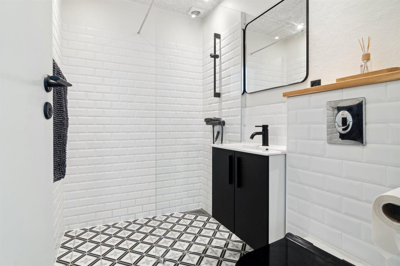 Es gibt 1 Badezimmer mit Duschnische und 1 Toilette.. Fußbodenheizung in 1 Badezimmer.