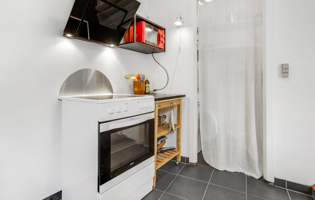 Willkommen in dieser Ferienwohnung, die mit ihrem Schlafzimmer und einem Badezimmer Platz für vier Personen bietet. Ihnen steht außerdem eine Küche zur Verfügung, die sich auf zwei Räume verteilt. Der Eingangsbereich, der Essbereich, der Herd und die Dunstabzugshaube befinden sich im selben Raum. Der Rest der Küche befindet sich im Nebenraum mit Spülmaschine, Kühlschrank und Spüle.