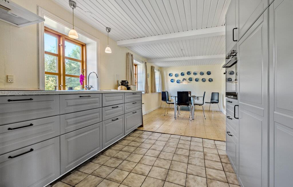 Verbringen Sie einen entspannten Urlaub in diesem traditionellen Landhaus, etwas außerhalb von Rønne auf Bornholm. Das Haus bietet Ihnen Ruhe und Natur pur, eingebettet in eine weitläufige Landschaft mit malerischem Blick auf die Hügel und Felder der Umgebung. Genießen Sie die friedliche Atmosphäre auf dem großen Grundstück, umgeben von alten Bäumen, und lassen Sie die Seele baumeln. Nutzen Sie die Sitzgruppe im Garten, um draußen zu essen und die frische Luft zu genießen.