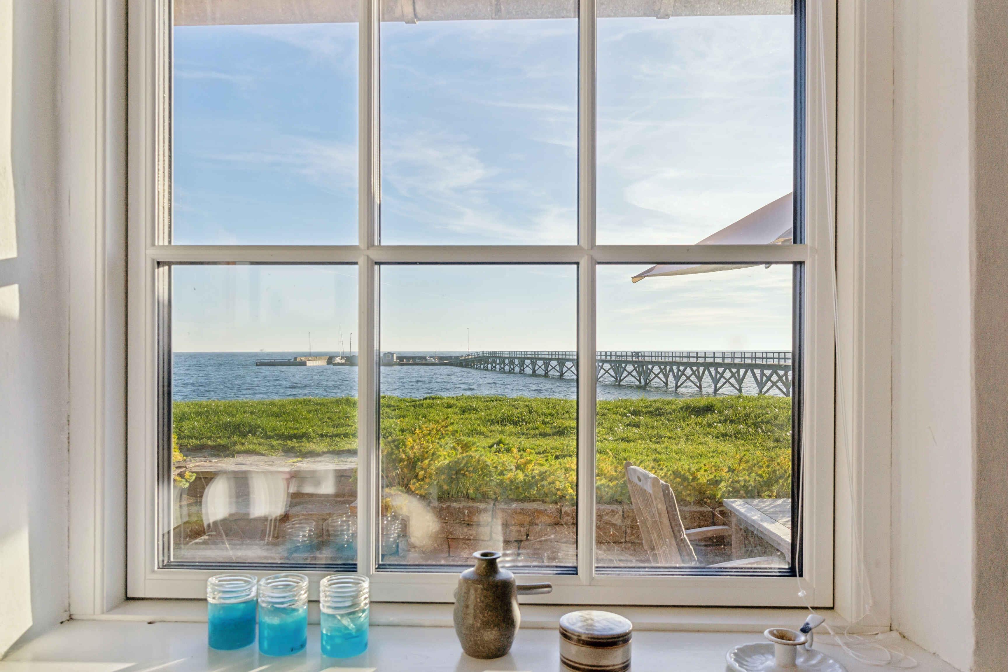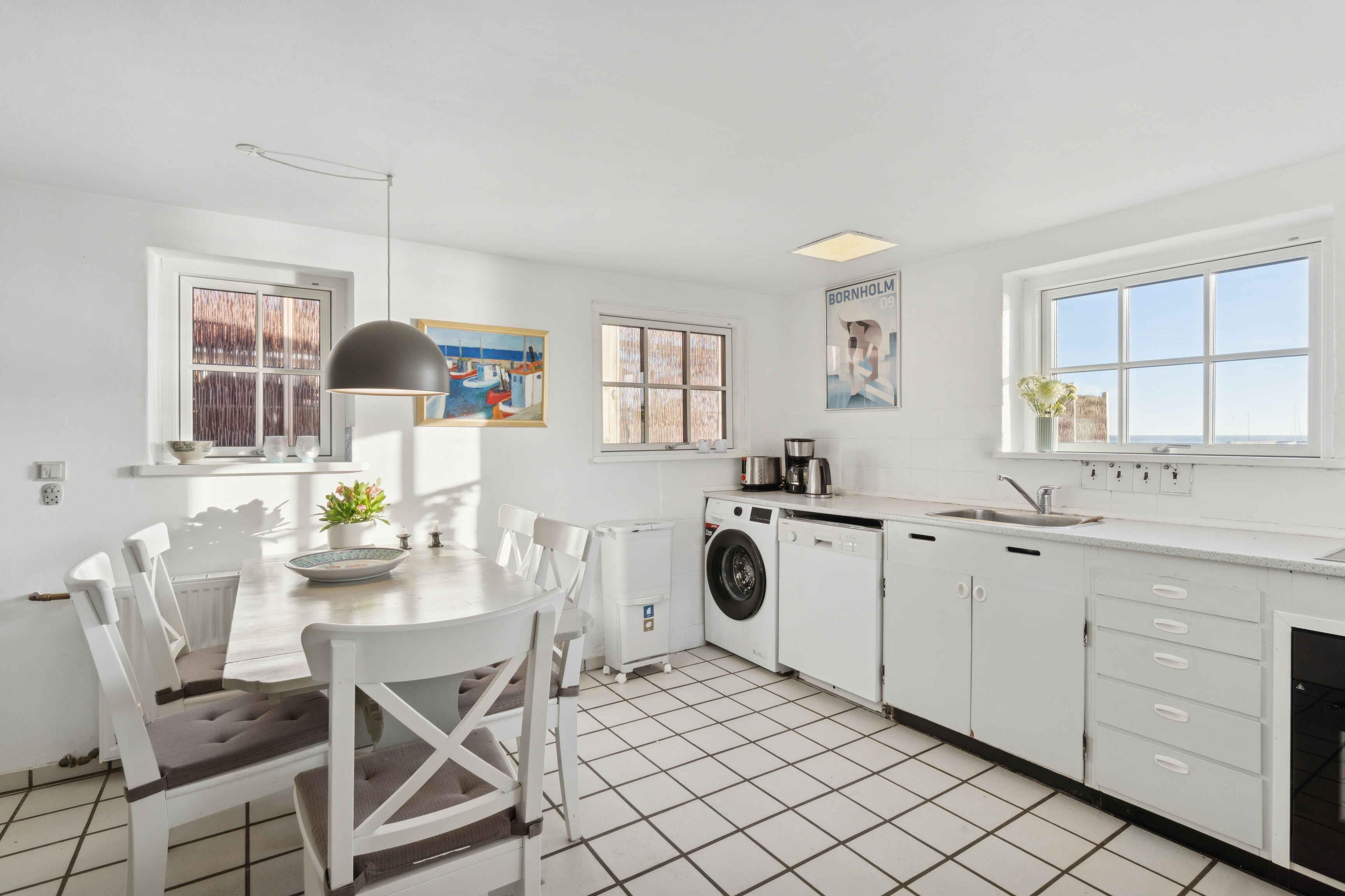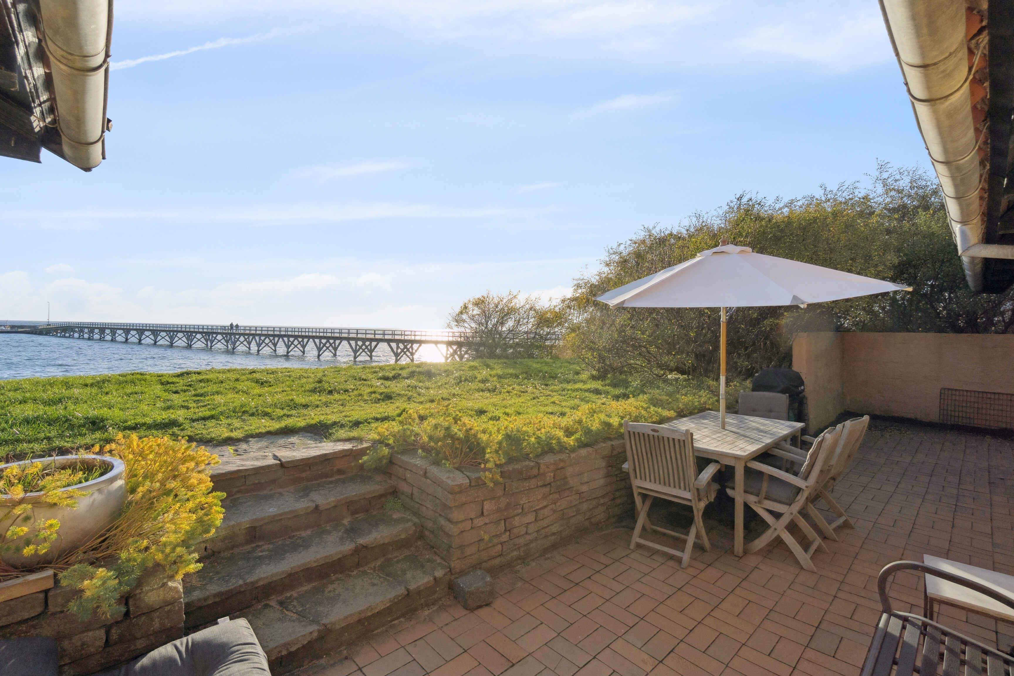 Das Brohuset ist ein großzügiges Ferienhaus mit 120 m², drei Schlafzimmern und fünf Schlafplätzen. Die direkte Lage am Meer schafft eine ruhige Atmosphäre, in der das Rauschen der Wellen zum natürlichen Teil des Aufenthalts wird. Hier verbinden sich Aussicht, Einfachheit und entspanntes Küstenleben. Die funktionale Einrichtung lädt nach einem Tag am Wasser zur Erholung ein. Große Fenster bringen Licht in die Räume und bieten Meerblick. Das Haus eignet sich für Familien und kleine Gruppen, die eine ruhige Basis suchen. Die Terrasse ermöglicht es, von morgens bis abends draußen zu sein. Hier kann man essen, lesen oder das Leben an der Küste beobachten. Die kurze Entfernung zum Strand erleichtert Baden und Spaziergänge. Die Umgebung bietet besondere Urlaubserlebnisse. Arnager ist ein kleines Fischerdorf mit authentischer Hafenatmosphäre. Die lange Holzbrücke führt zur kleinen Hafeninsel und eignet sich gut für einen ruhigen Spaziergang. Der Strand am Brückenfuß ist familienfreundlich und ideal zum Baden. Die Küste lädt zu Wanderungen und Radtouren durch die typische Landschaft Süd-Bornholms ein. In der Nähe liegen Arnager Gamle Røgeri, lokale Wege und eine lebendige maritime Umgebung. Das Brohuset ist ideal für alle, die einen Urlaub nahe dem Meer, der Natur und einem Ort mit lokalem Charakter suchen. Hier findet man den passenden Rahmen für Ruhe, Gemeinsamkeit und Erlebnisse.