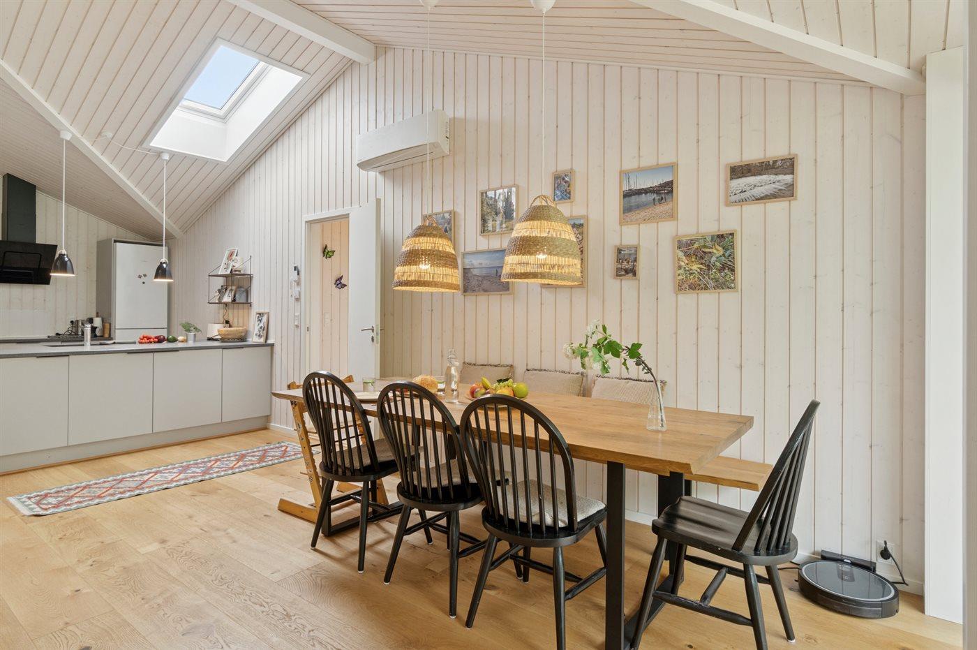 Das Haus ist modern und sommerlich eingerichtet. Große Fensterpartien mit gutem Lichteinfall sowie Decken bis zum First lassen die meisten Räume hell und geräumig erscheinen.
