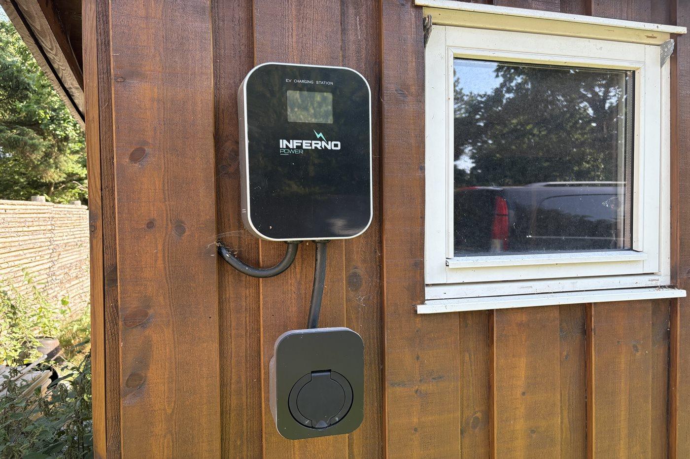 Ein Ladegerät für Elektroautos ist vorhanden.