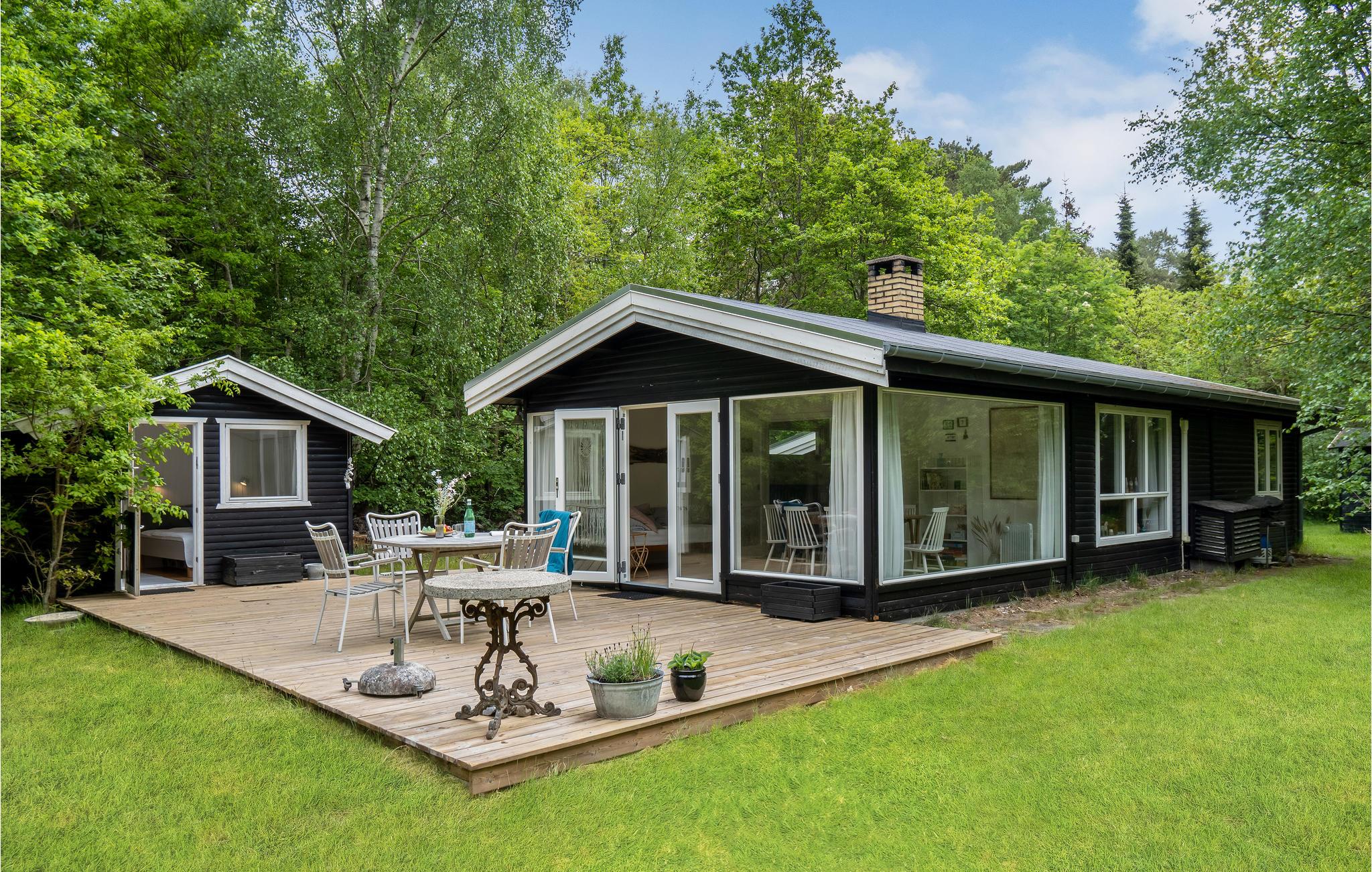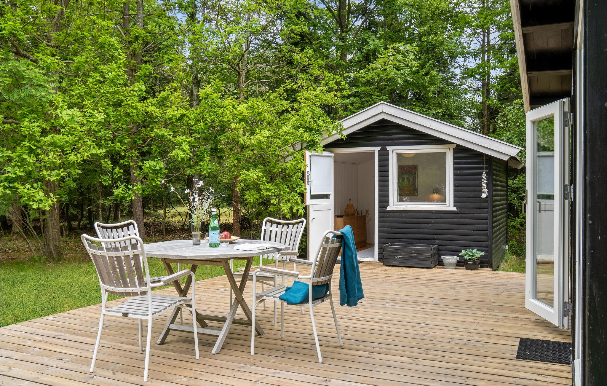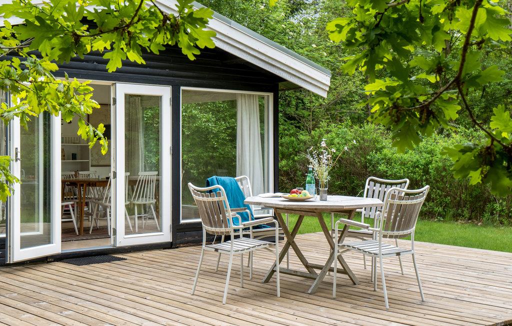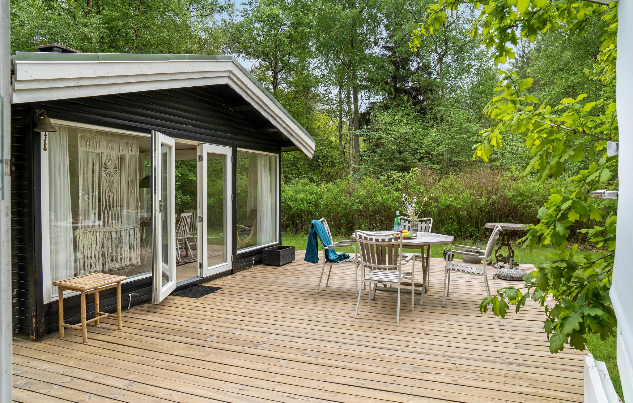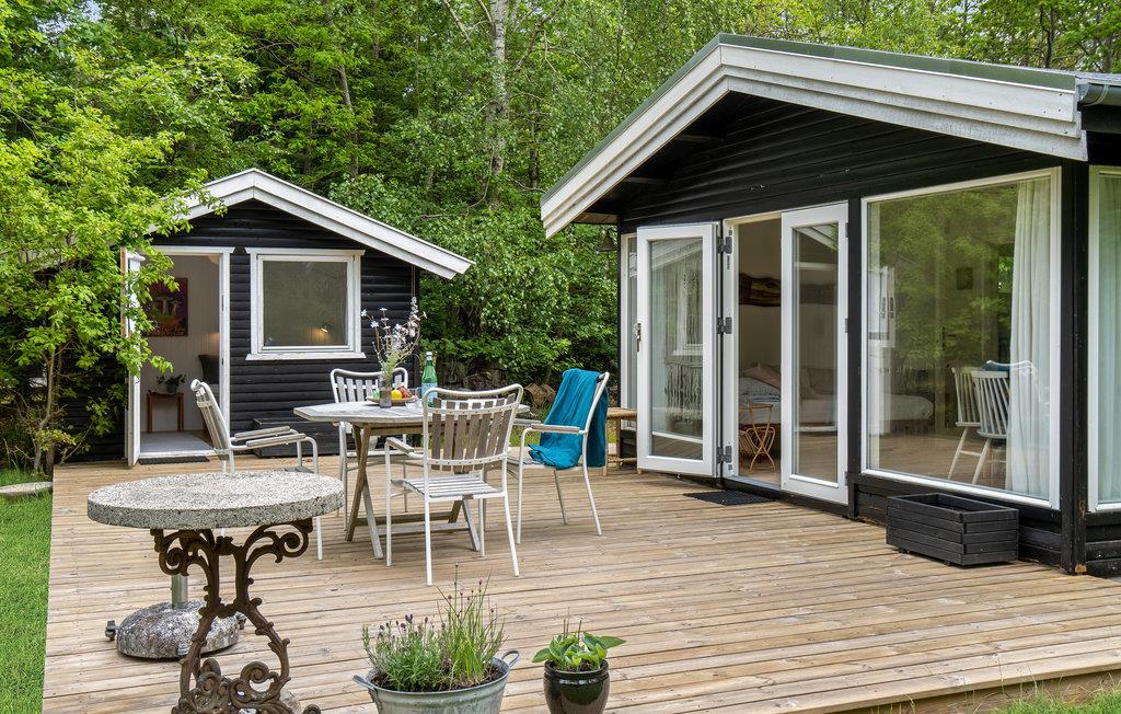 Auf einem bewaldeten Grundstück empfängt Sie dieses charmante Ferienhaus für Ihren entspannten Urlaub am Wasser.